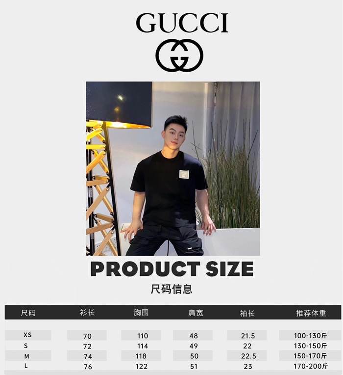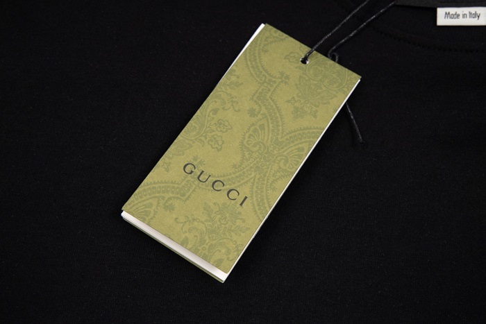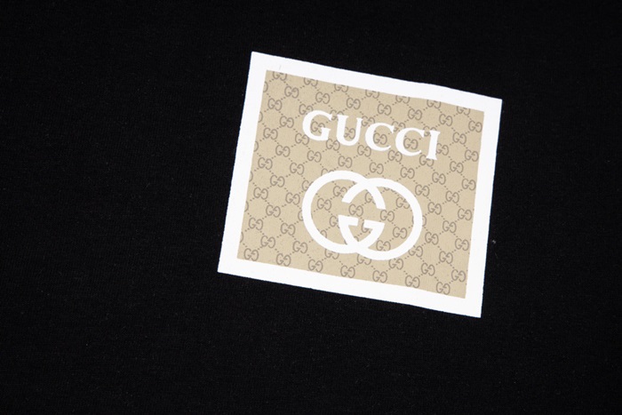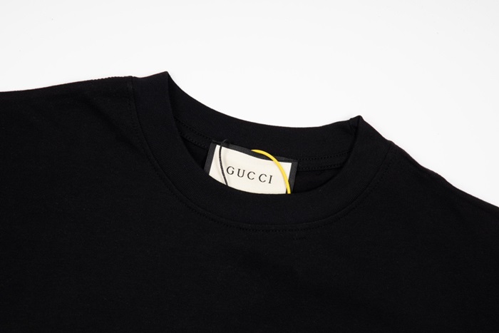 グッチユニセックスブラッククルーネック半袖Tシャツc05011