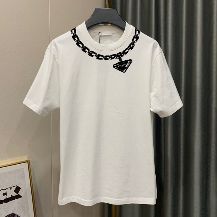 プラダメンズクルーネックホワイト半袖Tシャツa02739