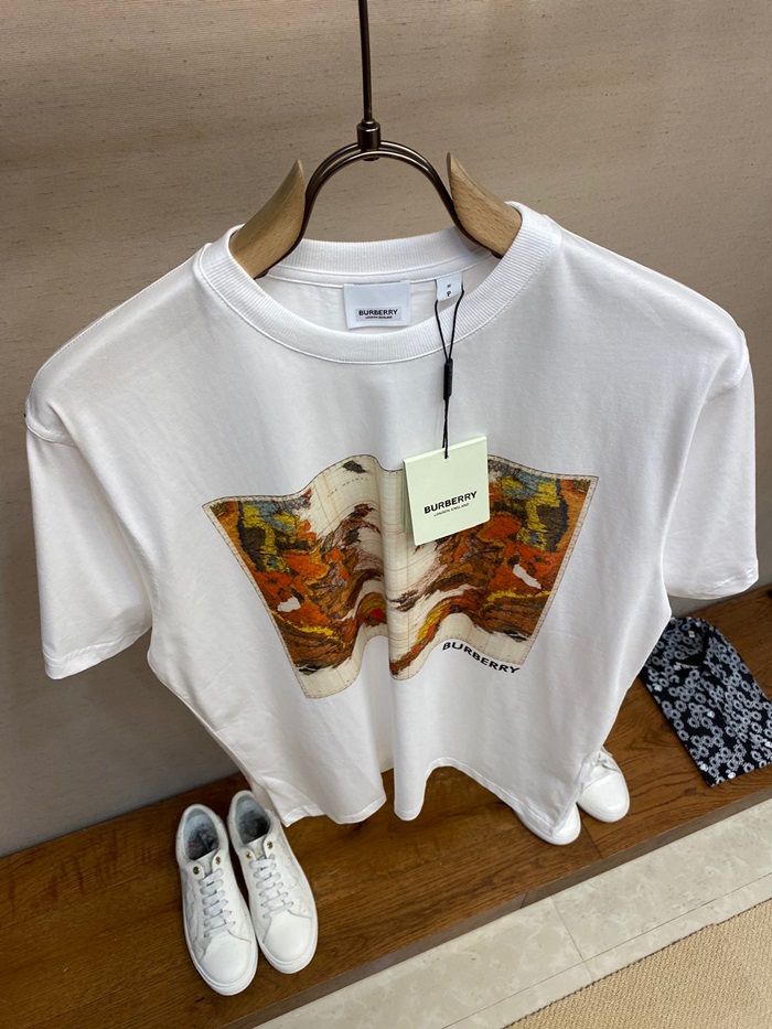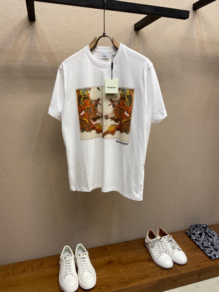 バーバリーユニセックスホワイトクルーネック半袖Tシャツr04475