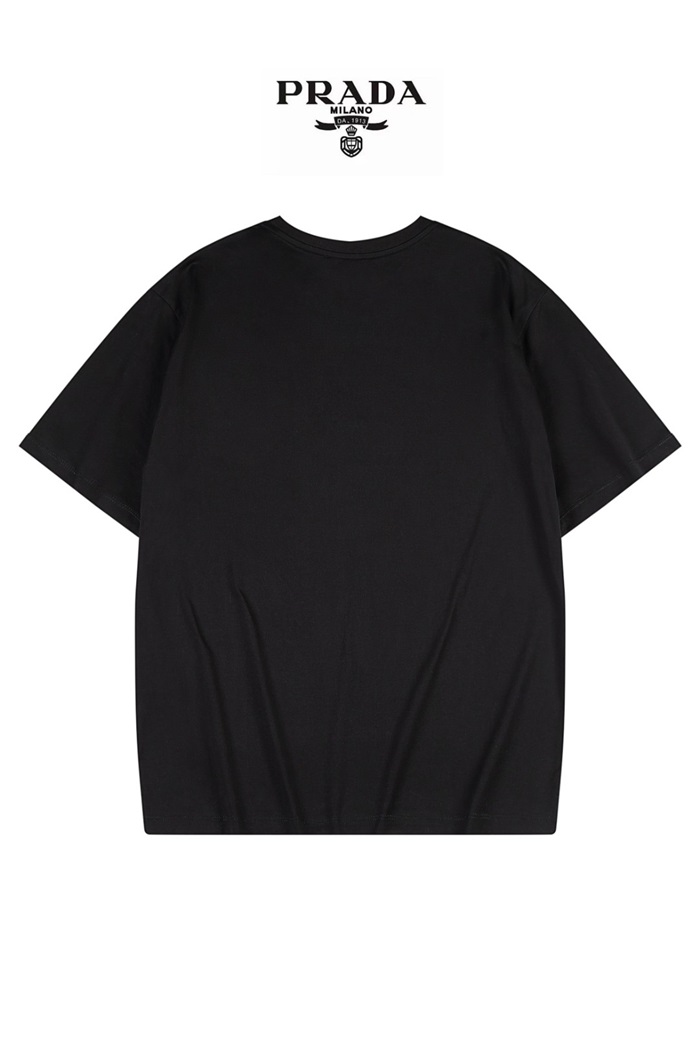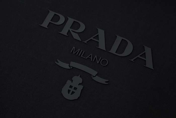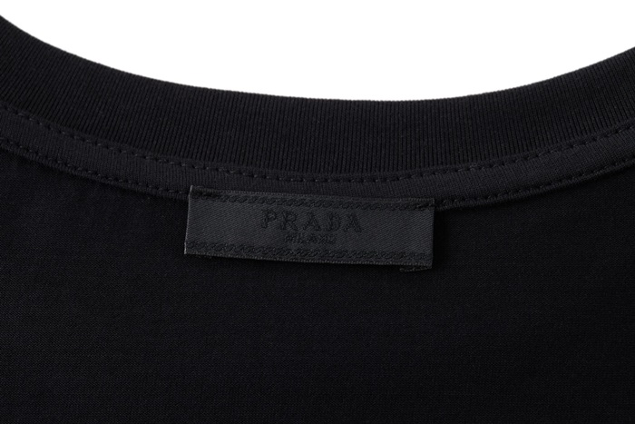 プラダメンズクルーネックブラック半袖Tシャツa02746