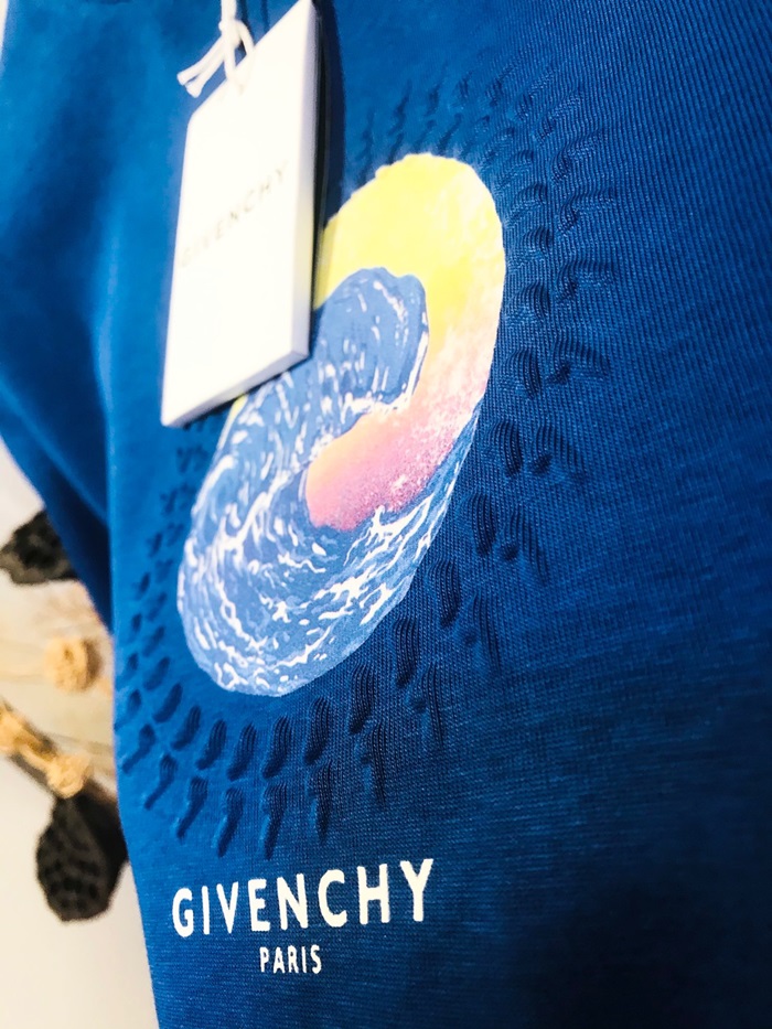 ジバンシィメンズクルーネックブルー半袖Tシャツv0806