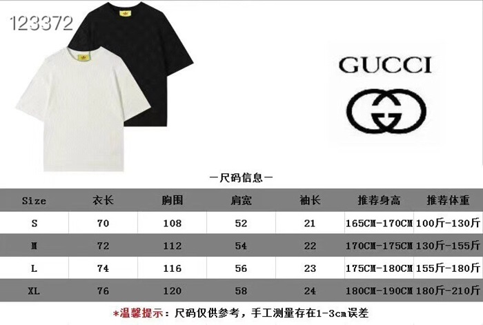 グッチユニセックスブラッククルーネック半袖Tシャツc05018