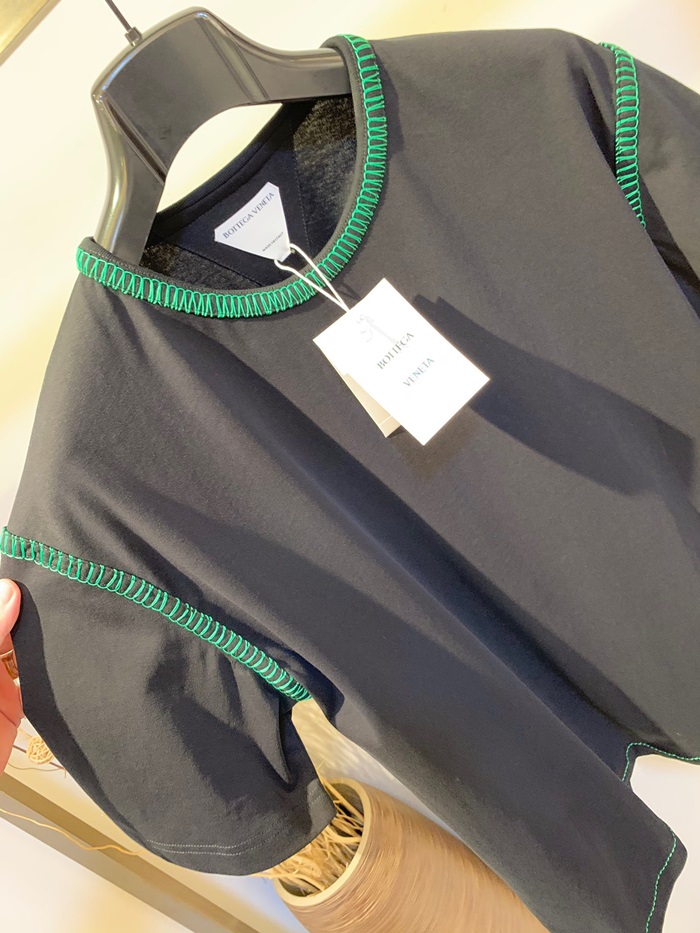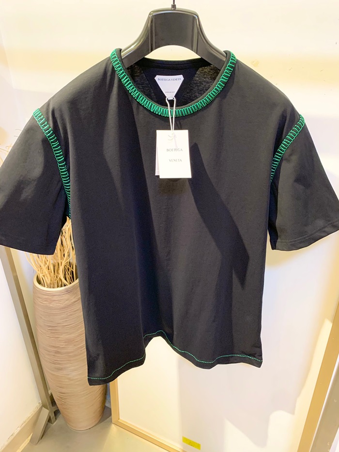 ボッテガヴェネタメンズクルーネックブラック半袖Tシャツt0412
