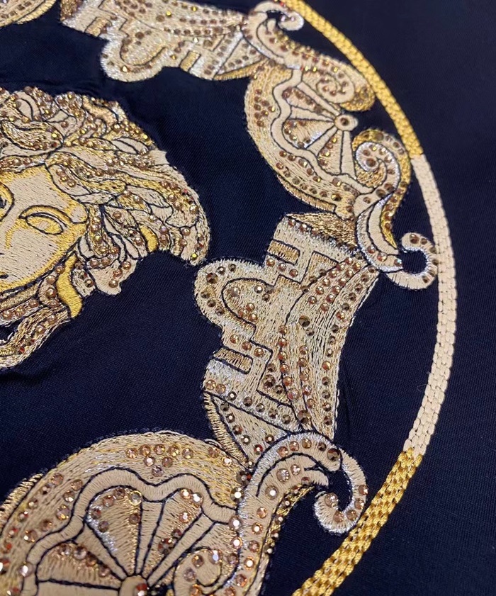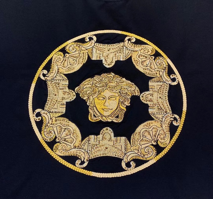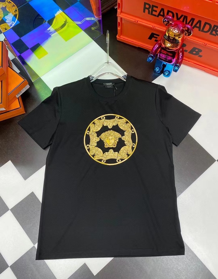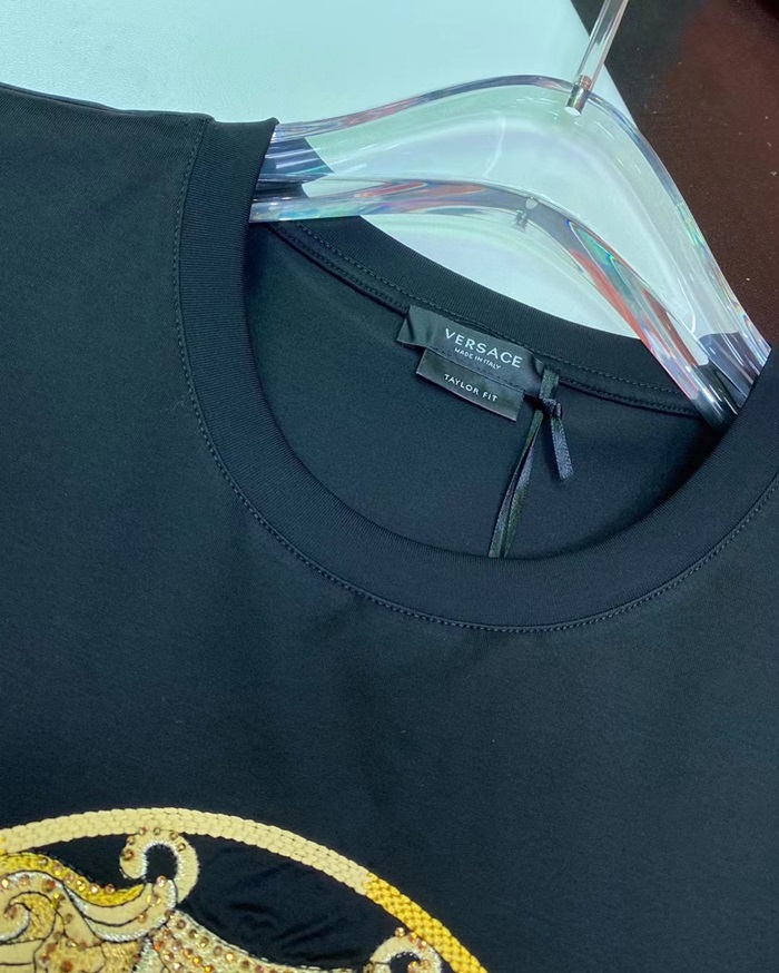 ヴェルサーチェメンズブラッククルーネック半袖Tシャツr0920