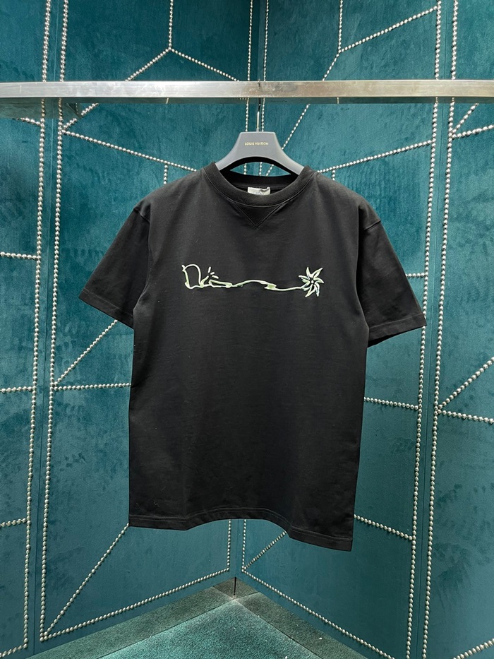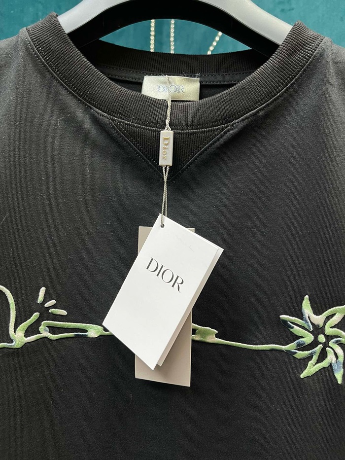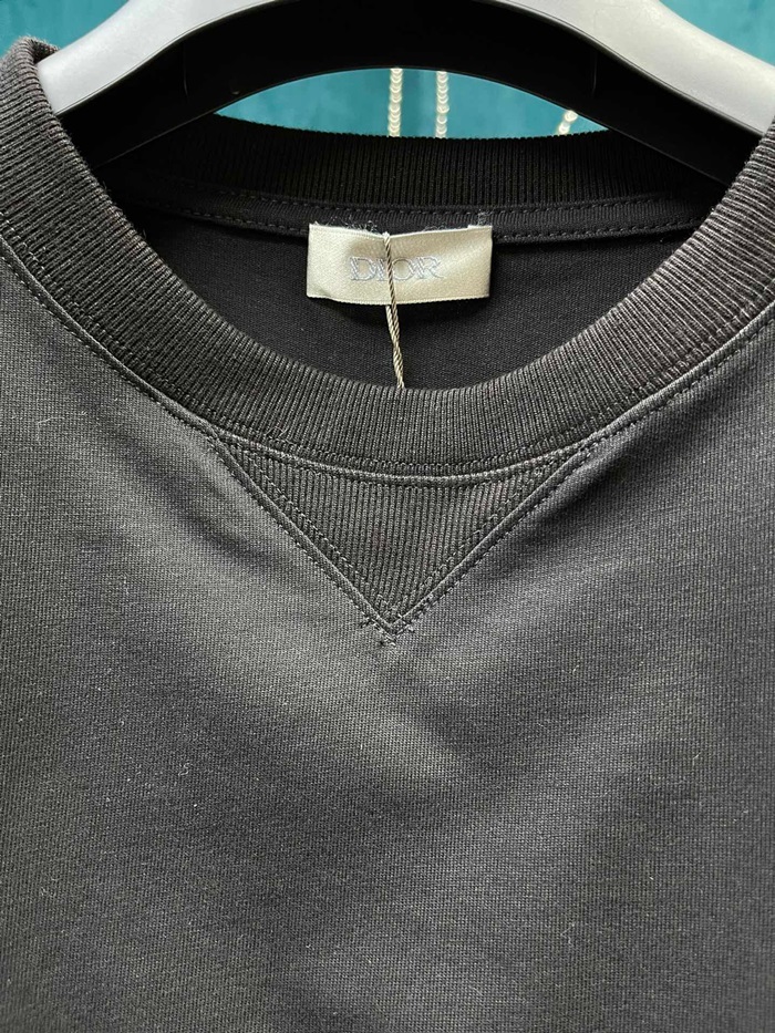 ディオールメンズブラッククルーネック半袖Tシャツo0