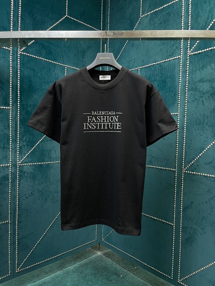 バレンシアガメンズクルーネックブラック半袖Tシャツl01639
