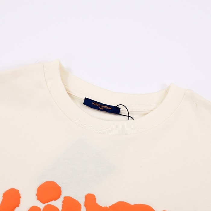 ルイヴィトンメンズアイボリークルーネック半袖Tシャツu05141