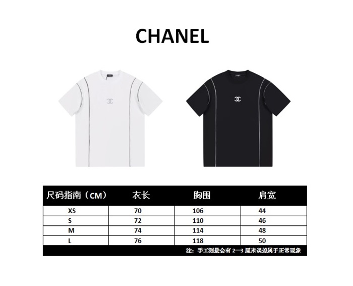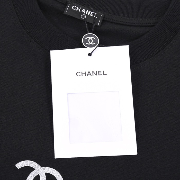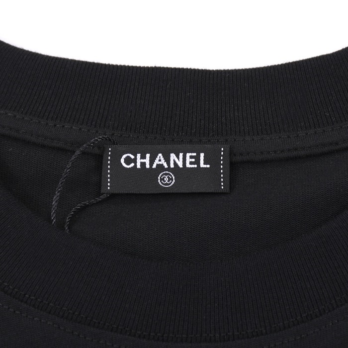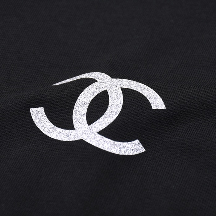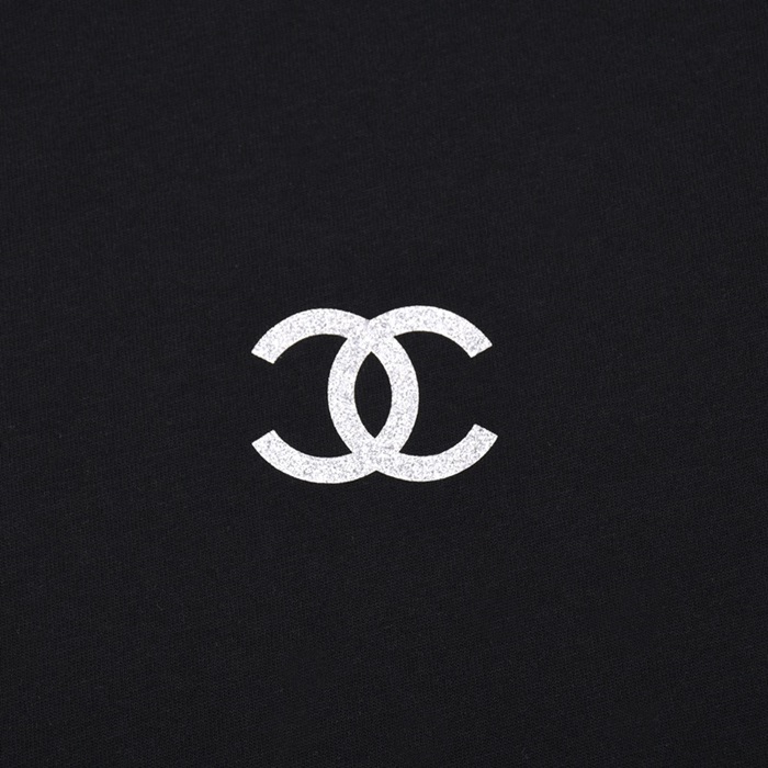 シャネルユニセックスクルーネックブラック半袖Tシャツl0918