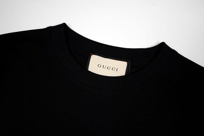 グッチユニセックスブラッククルーネック半袖Tシャツc05068