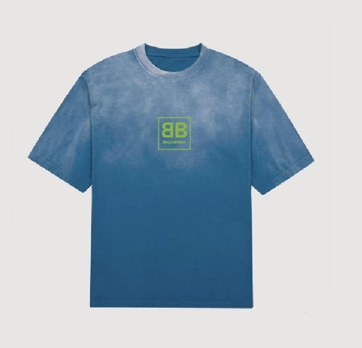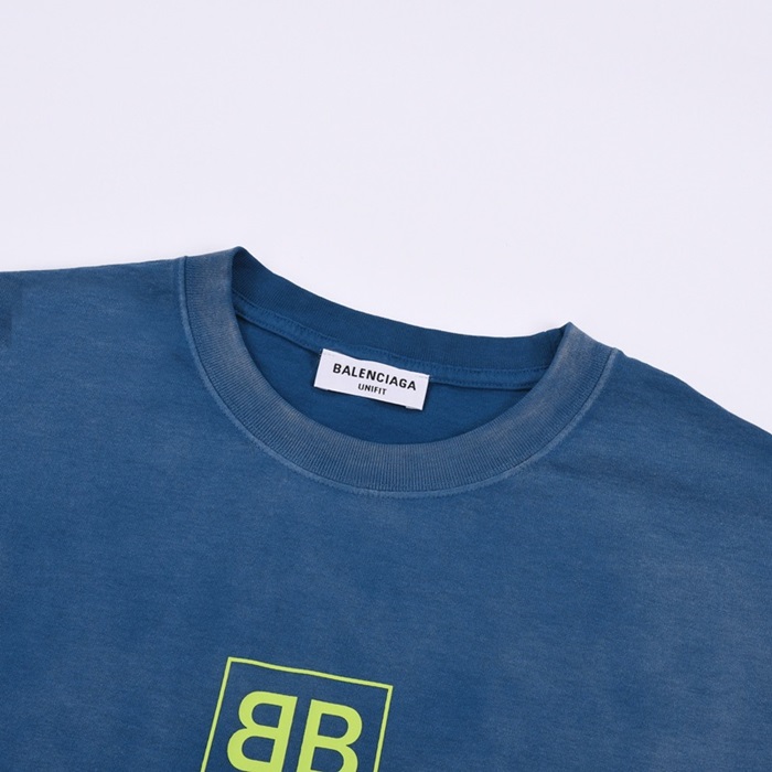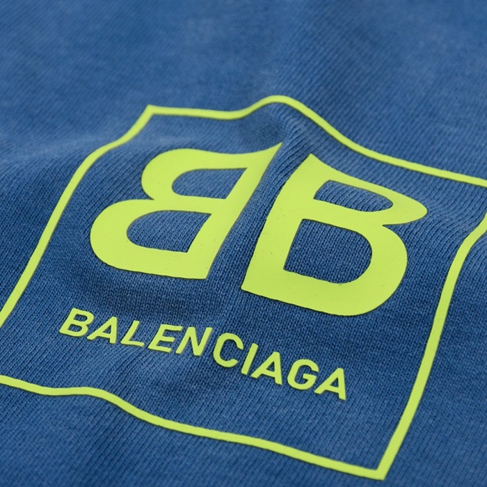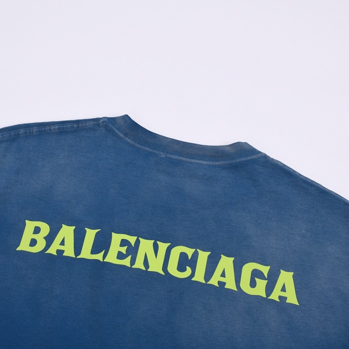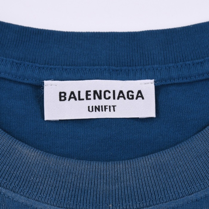 バレンシアガメンズクルーネックブルー半袖Tシャツl01644