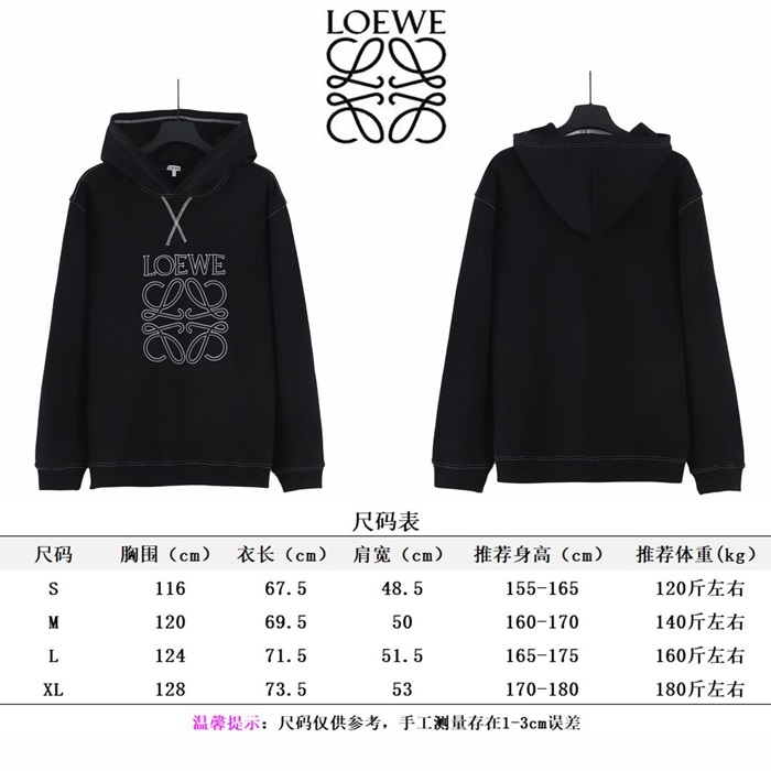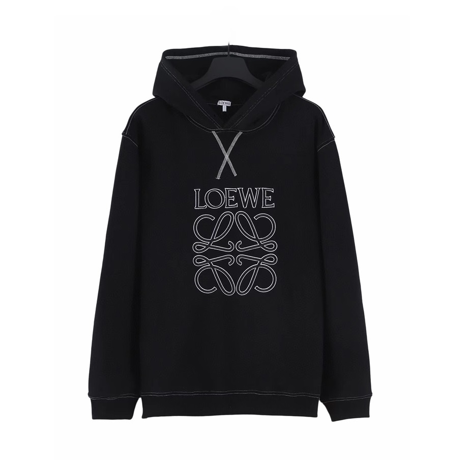 ロエベユニセックスカジュアルブラックフーディe0640