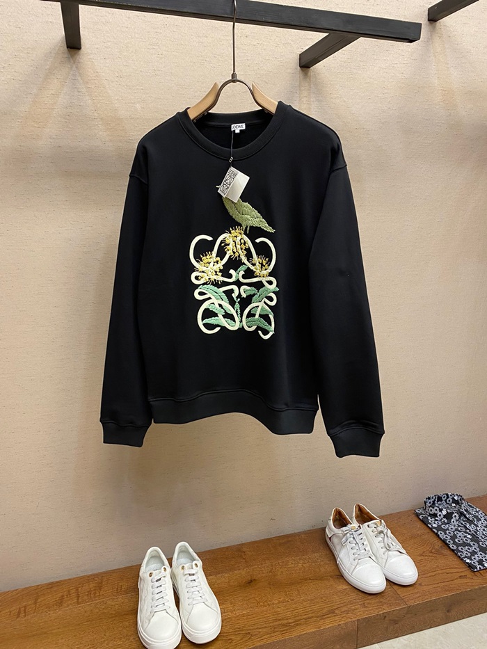 ロエベユニセックスクラシックブラックスウェットシャツe0640
