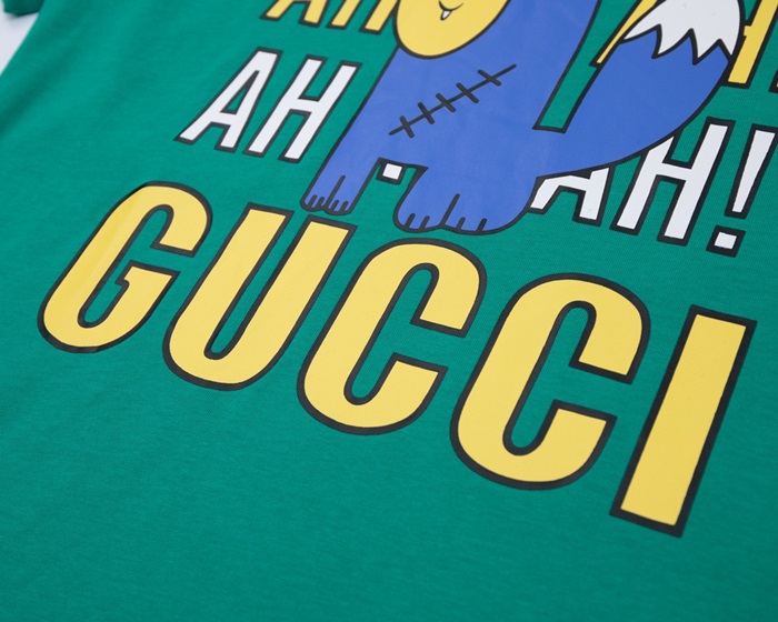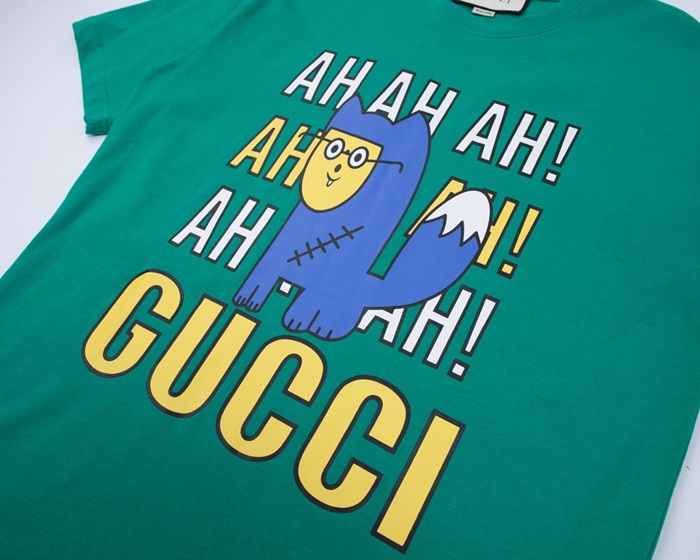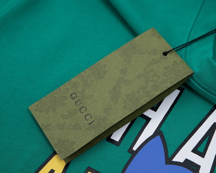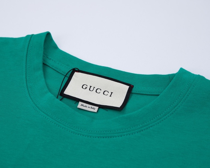 グッチユニセックスグリーンクルーネック半袖Tシャツc05079
