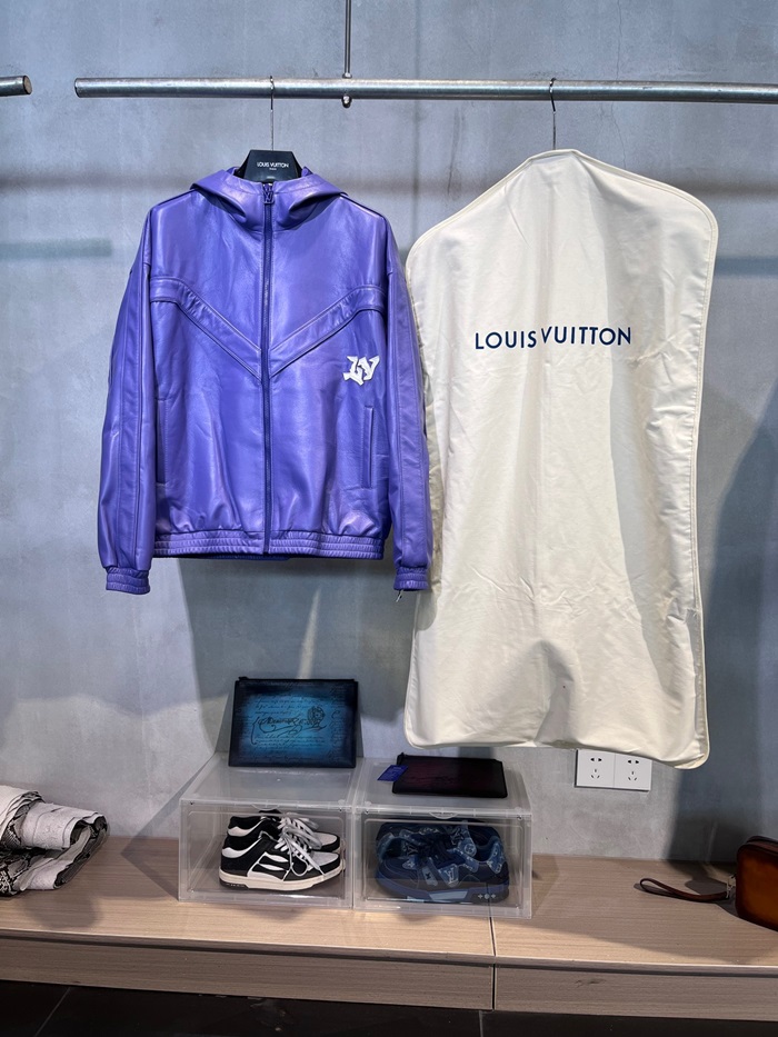 ルイヴィトンメンズブルーレザージャケットu5176