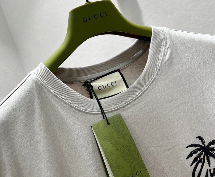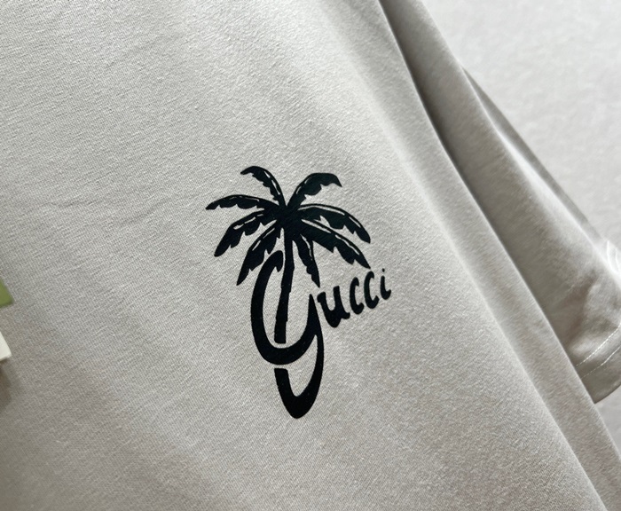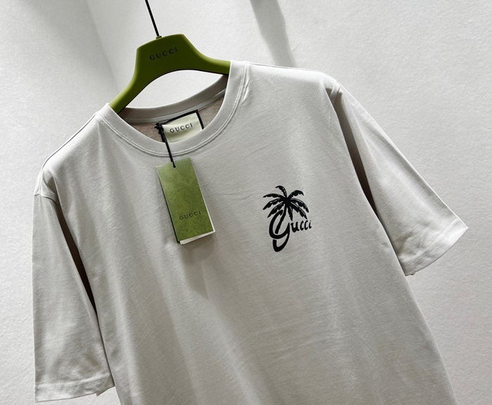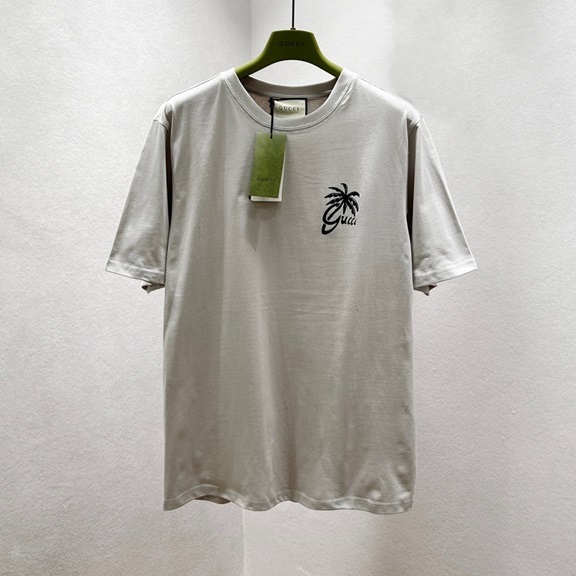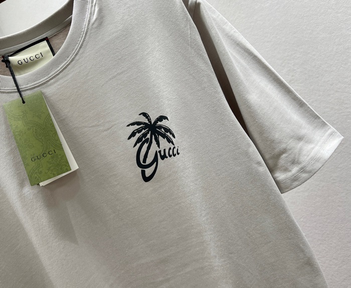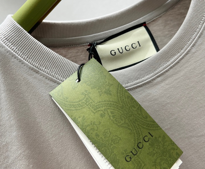 グッチユニセックスグレークルーネック半袖Tシャツc05105