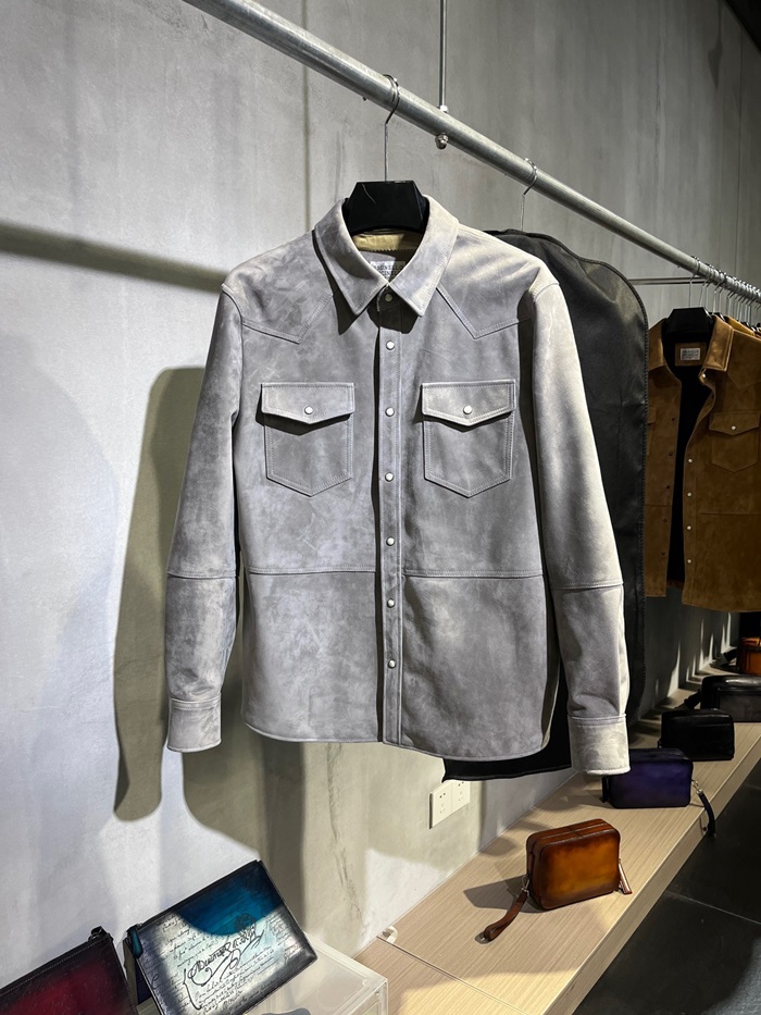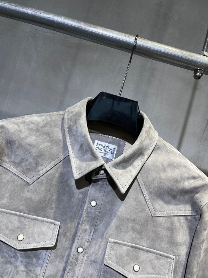 ブルネロクチネリメンズカジュアルグレーシャツu003