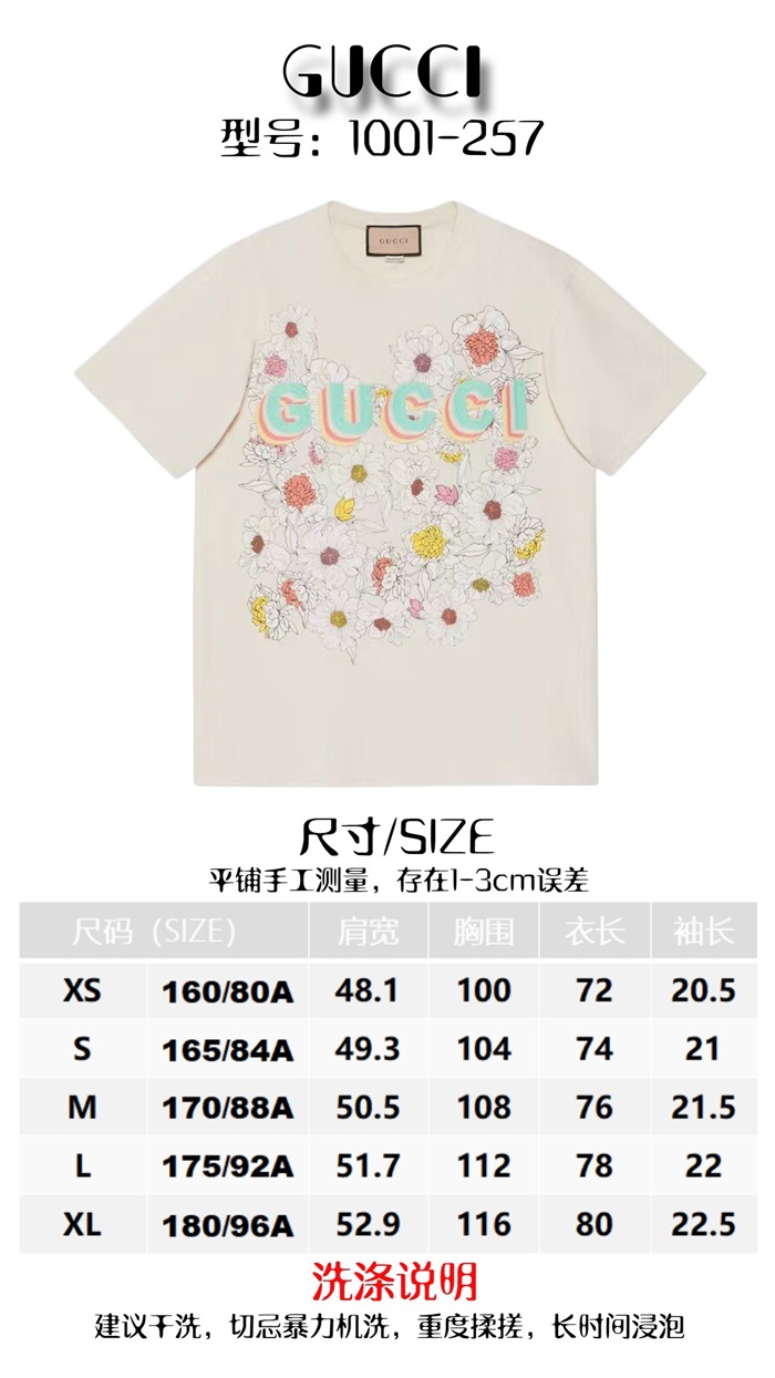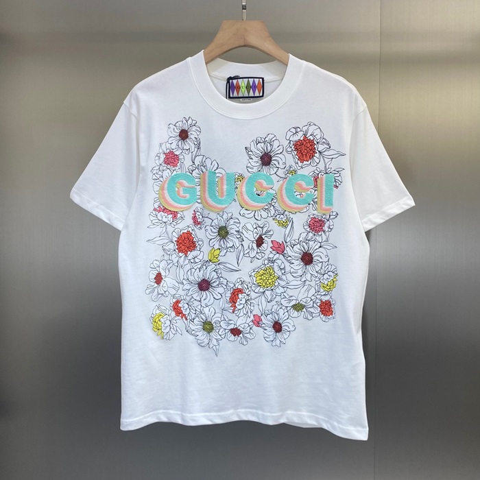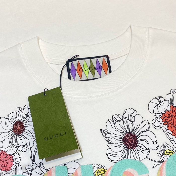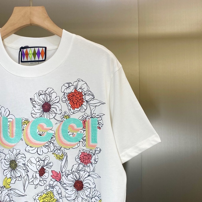 グッチユニセックスホワイトクルーネック半袖Tシャツc05107