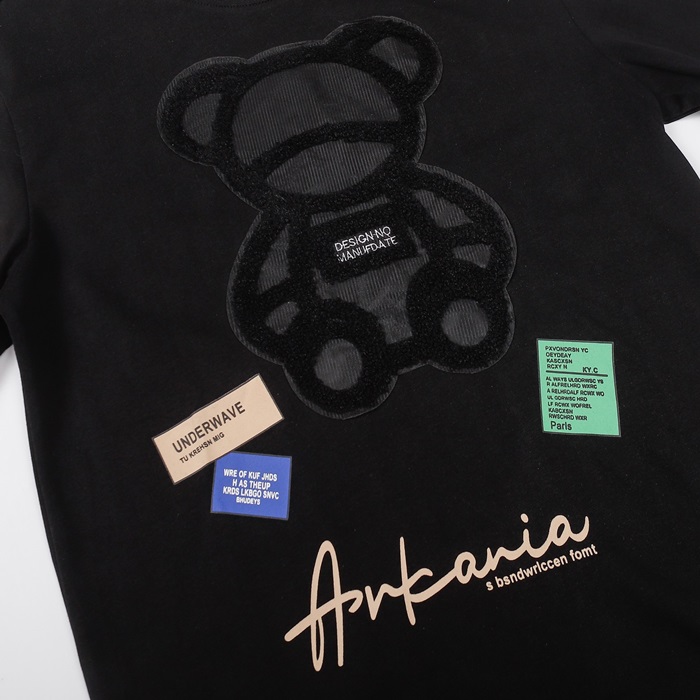 ユニセックスモダンブラック半袖Tシャツe0112