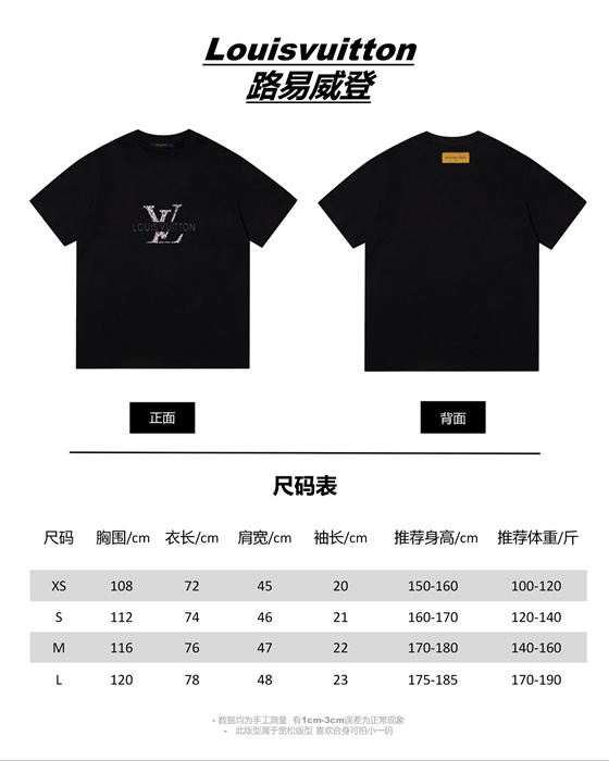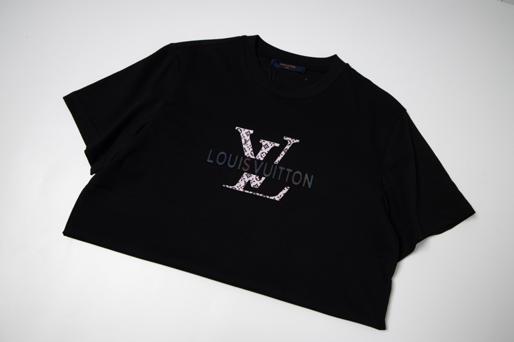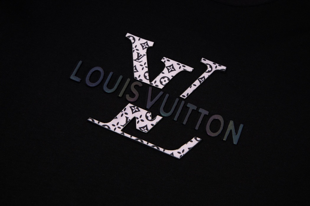 ルイヴィトンメンズブラッククルーネック半袖Tシャツu05202