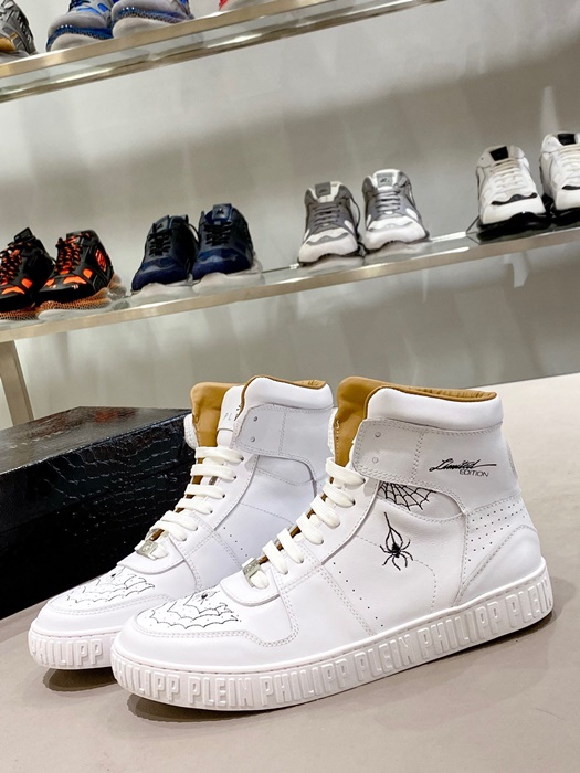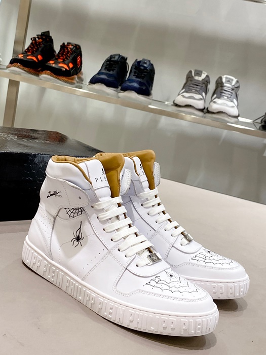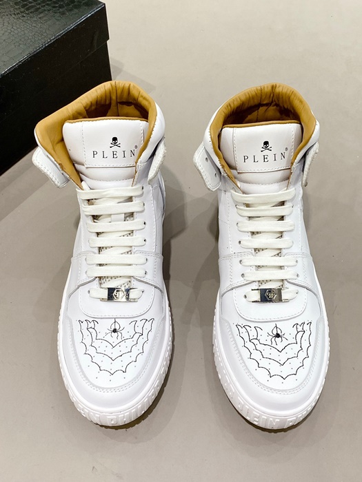 フィリッププレインメンズハイトップホワイトスニーカーi0161