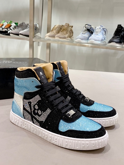 フィリッププレインメンズハイトップブルースニーカーi0163