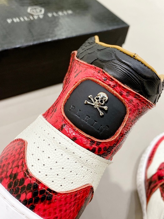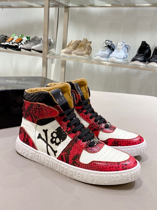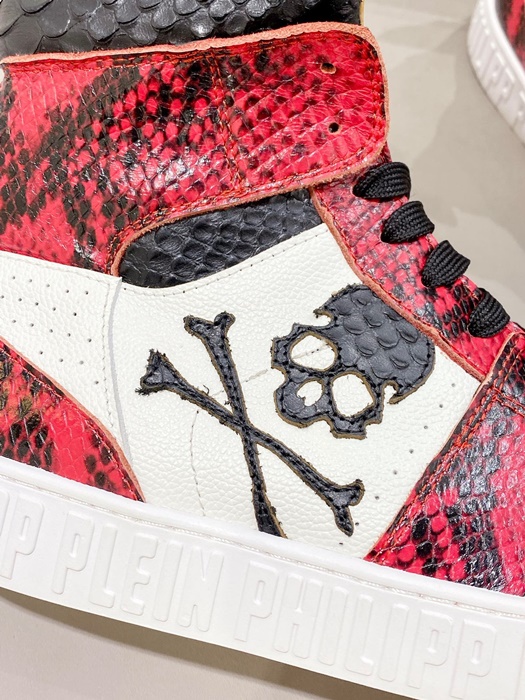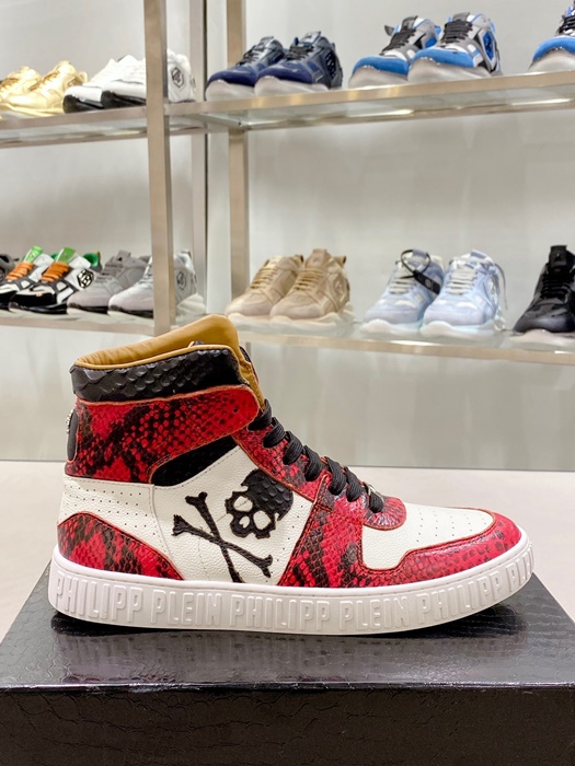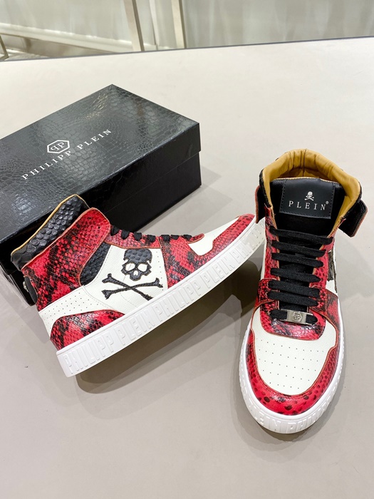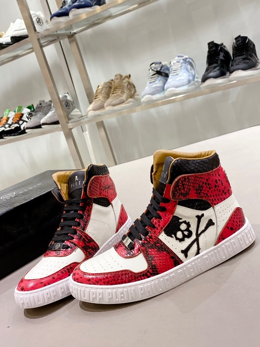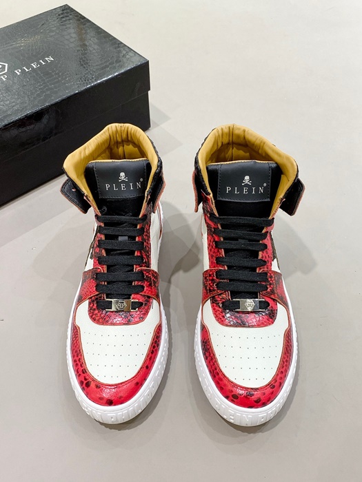 フィリッププレインメンズハイトップレッドスニーカーi0165