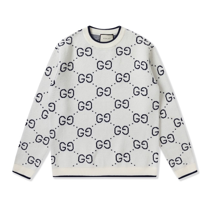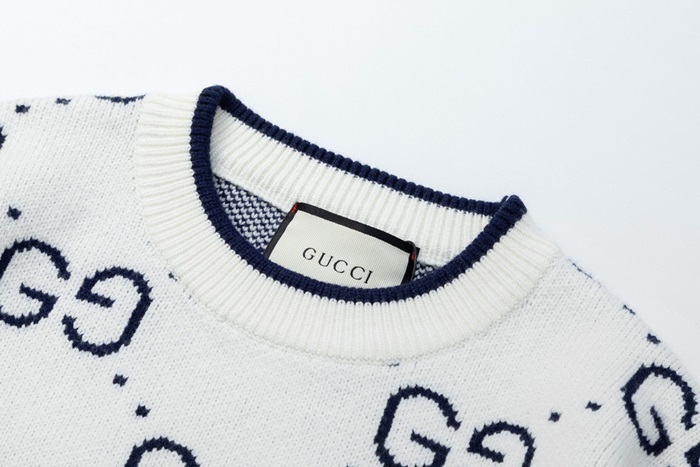 グッチメンズホワイトクルーネックニットc05148