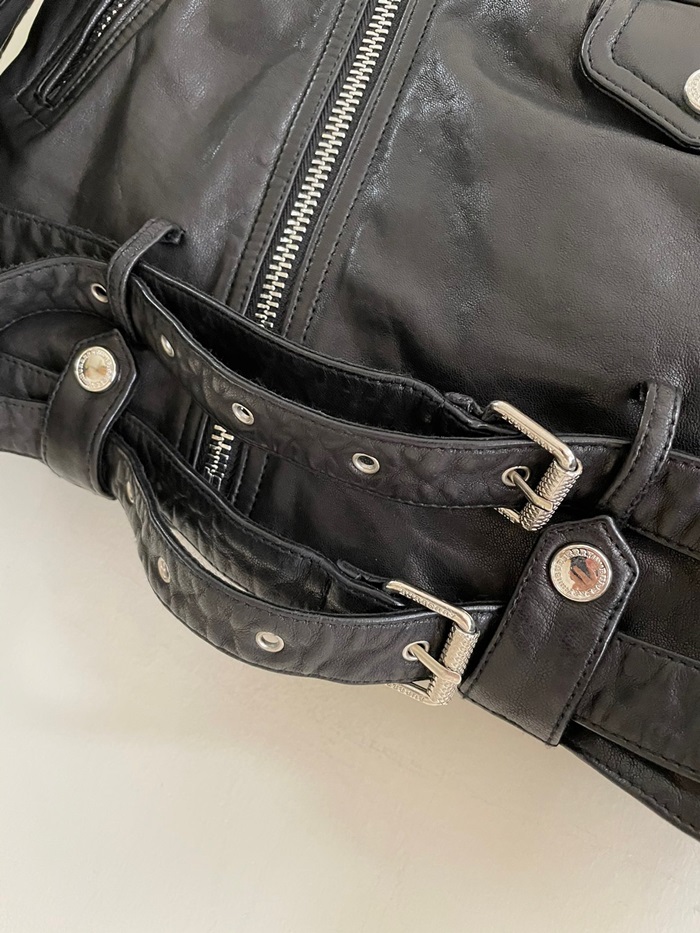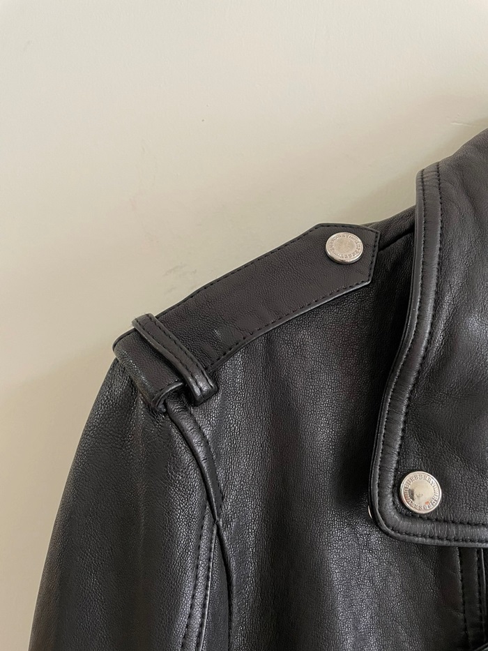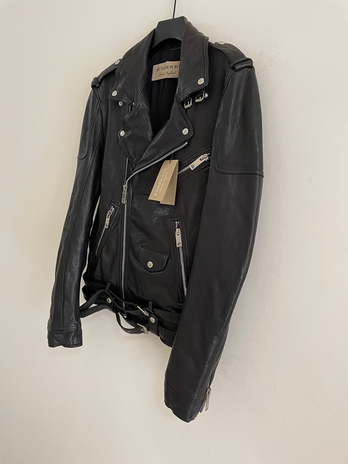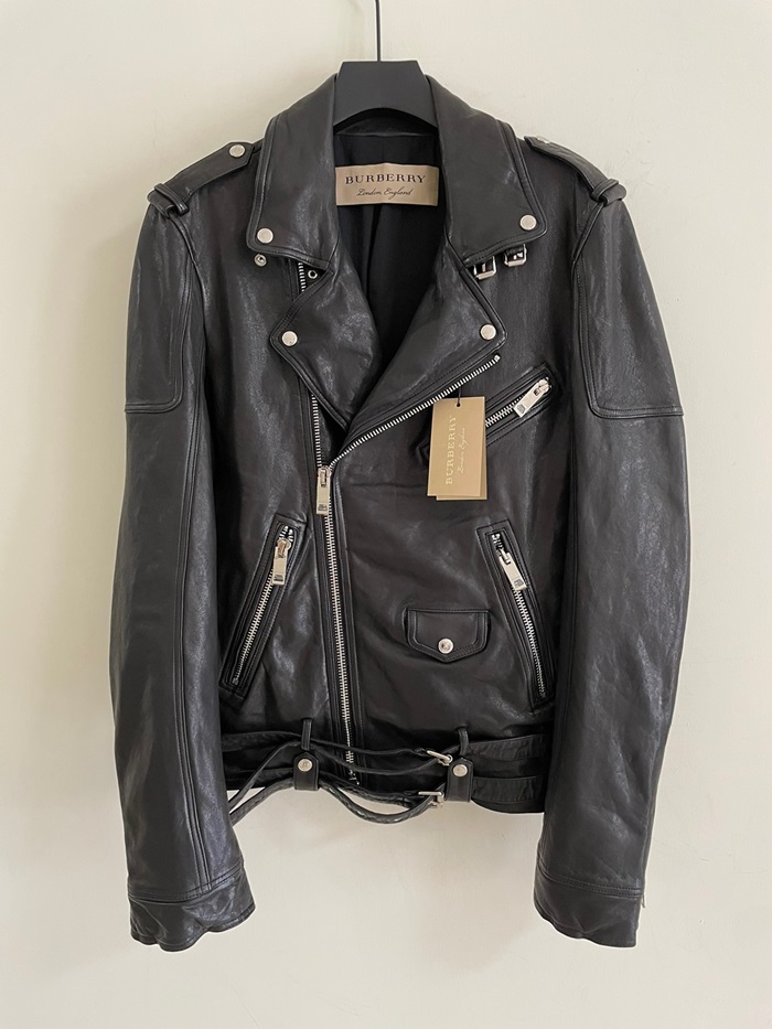 バーバリーメンズカジュアルレザーブラックジャケットr04508