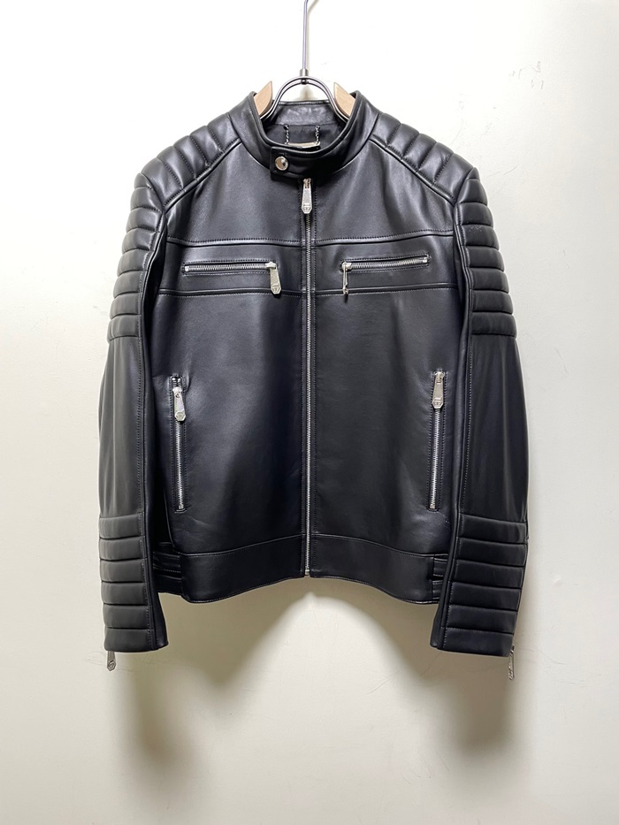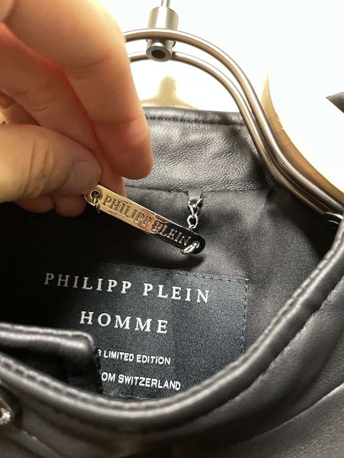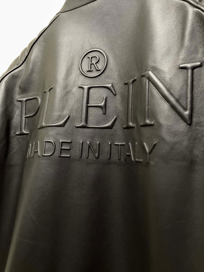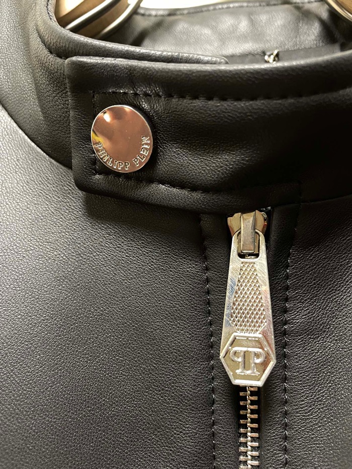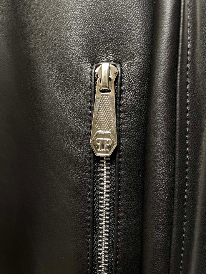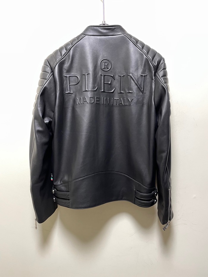 フィリッププレインメンズブラックレザージャケットi0172