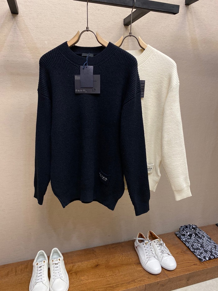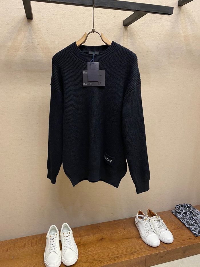 プラダメンズクルーネックブラックニットa02831