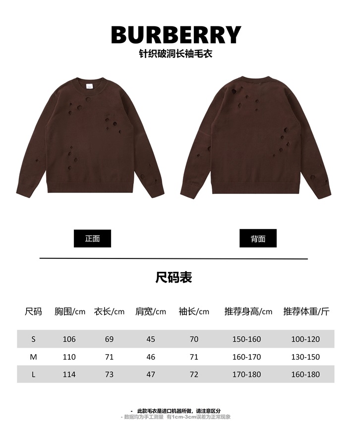 バーバリーメンズクルーネックブラウンニットr04514