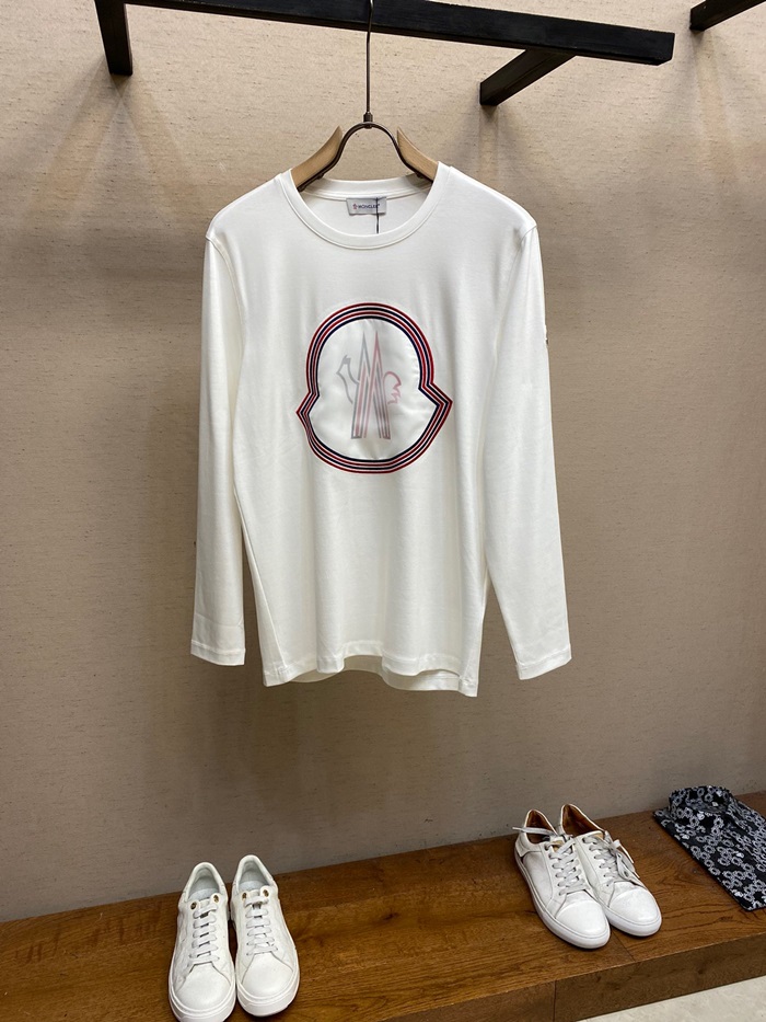 モンクレールメンズホワイトクルーネック長袖Tシャツc02515