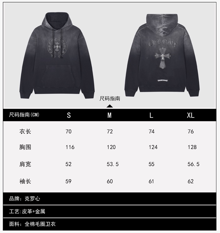 クロムハーツユニセックスブラックフーディr0464