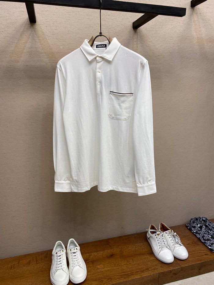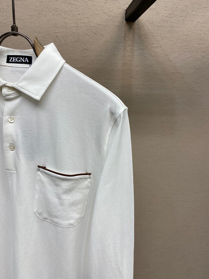 エルメネジルドゼニアメンズホワイトポロスウェットシャツg0401