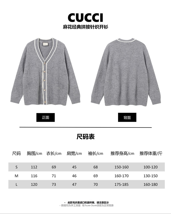 グッチユニセックスネックグレーカーディガンc05214