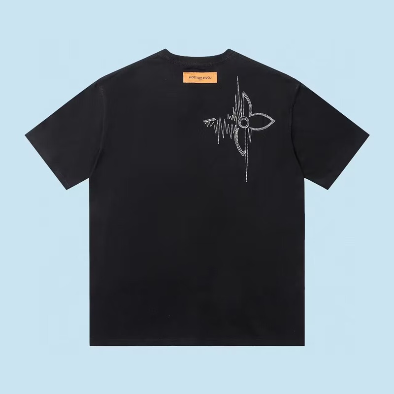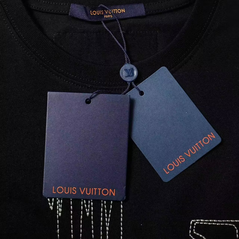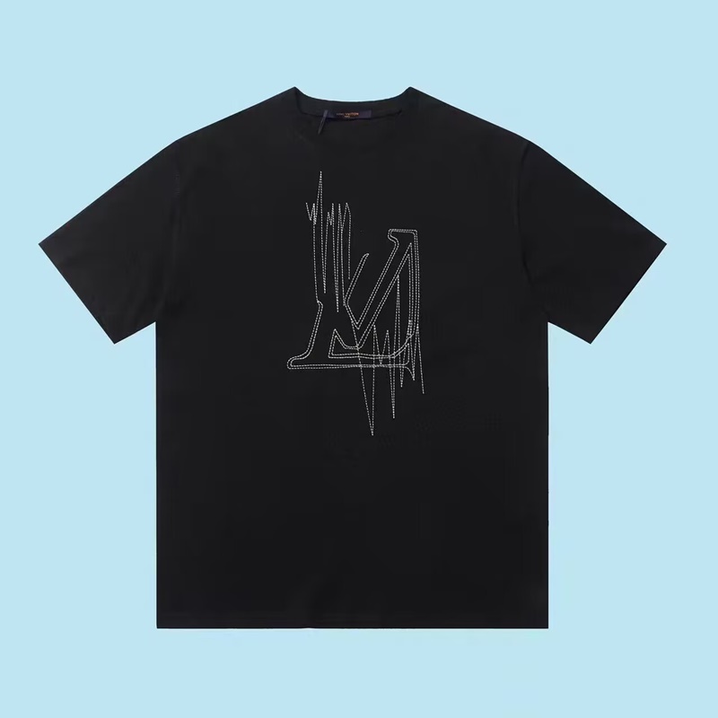 ルイヴィトンメンズブラッククルーネック半袖Tシャツu05287