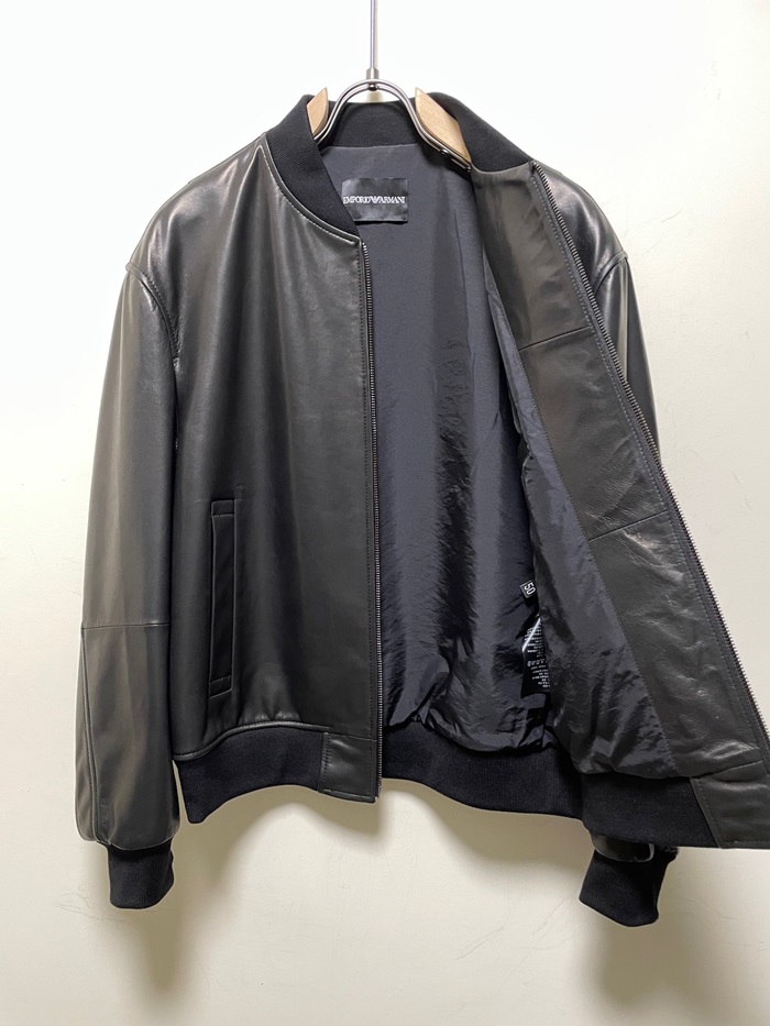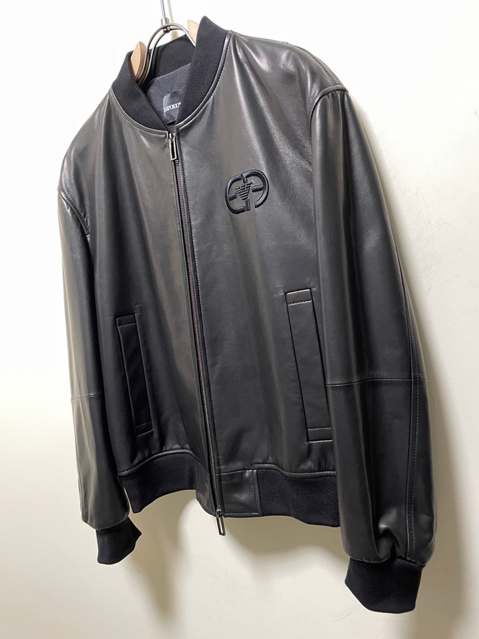 アルマーニメンズブラックレザージャケットm0921