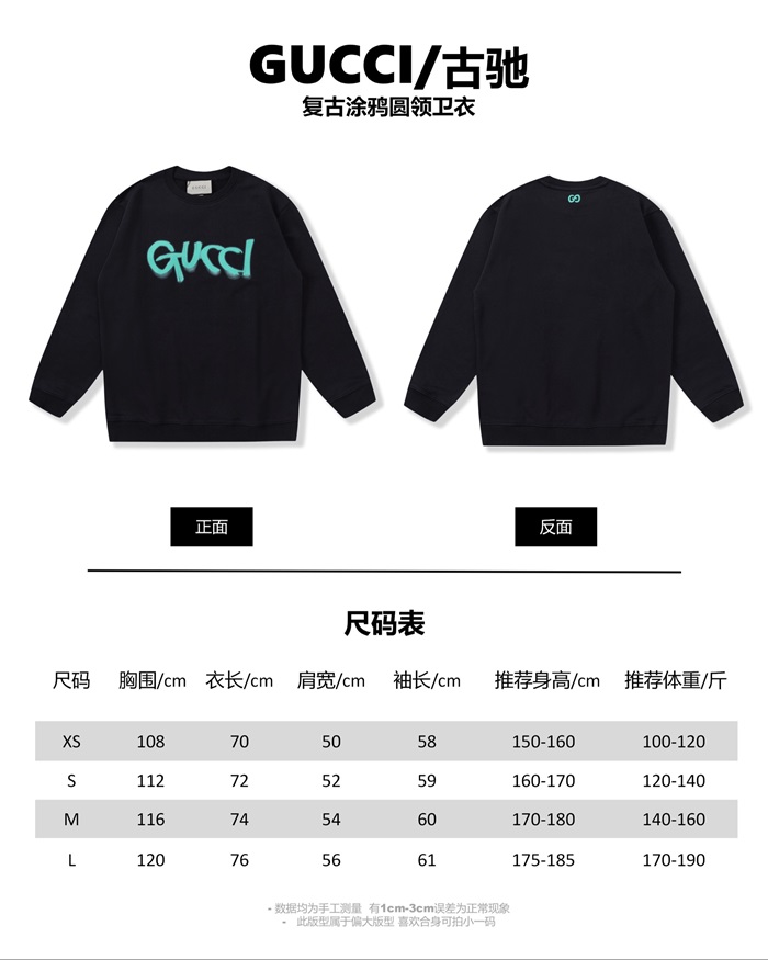 グッチメンズカジュアルブラックスウェットシャツc05225
