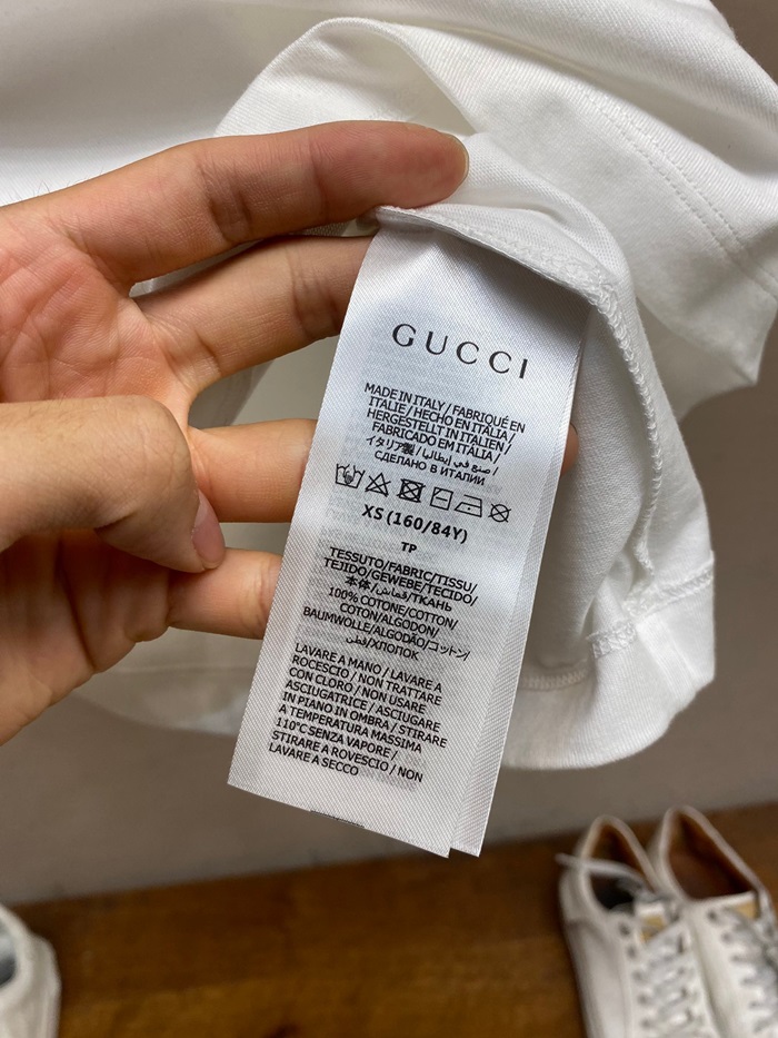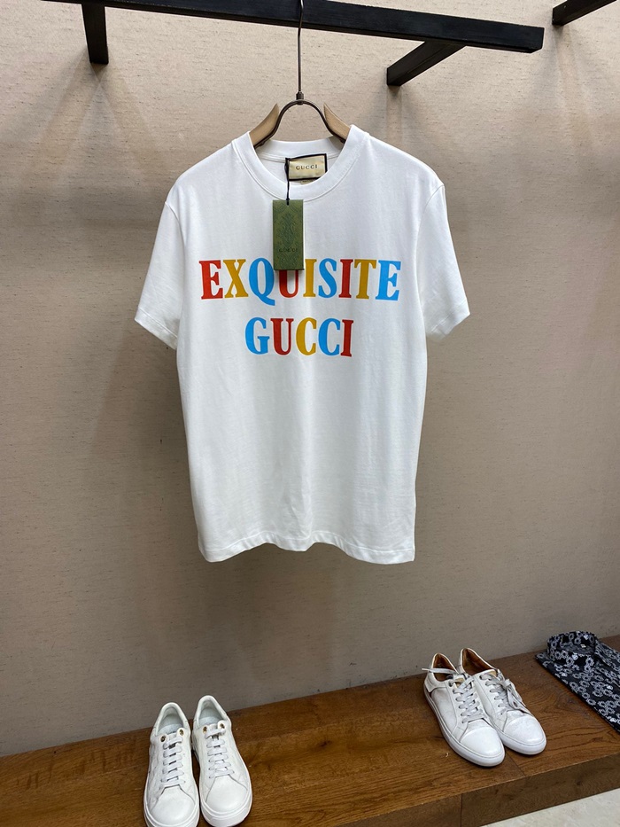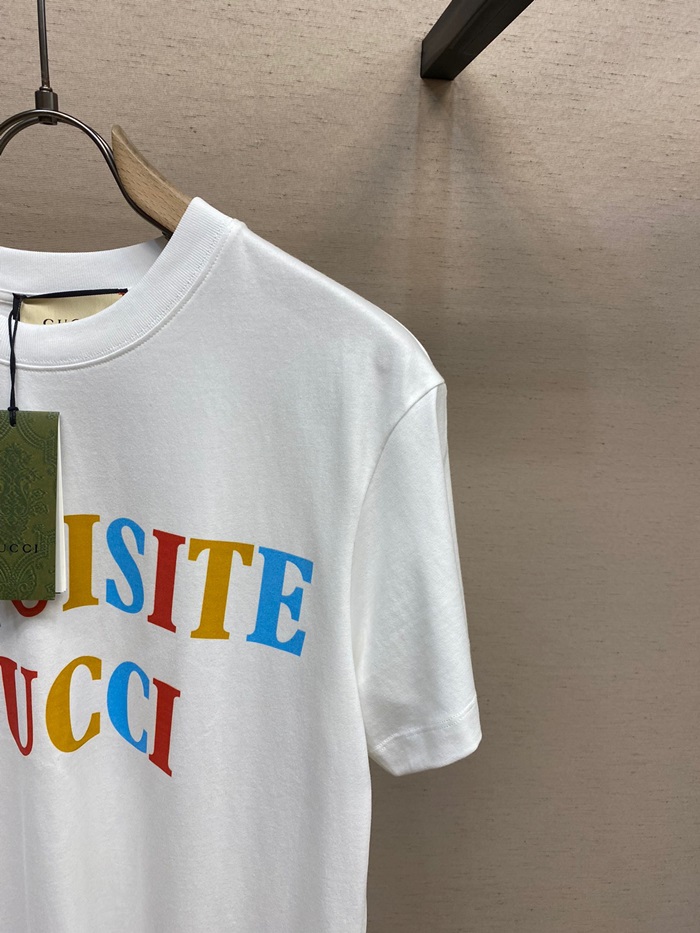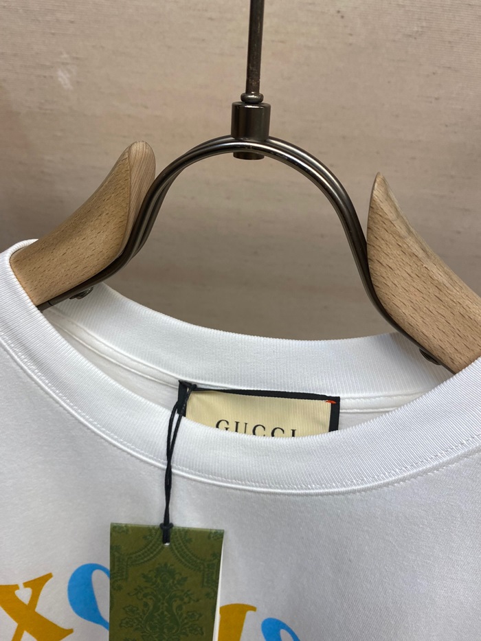 グッチユニセックスホワイトクルーネック半袖Tシャツc05255