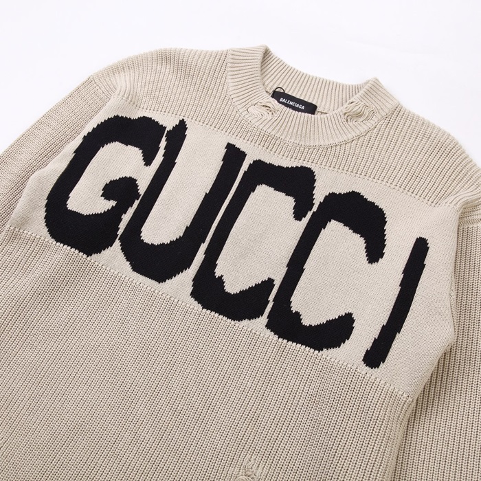 グッチメンズベージュクルーネックニットc05258