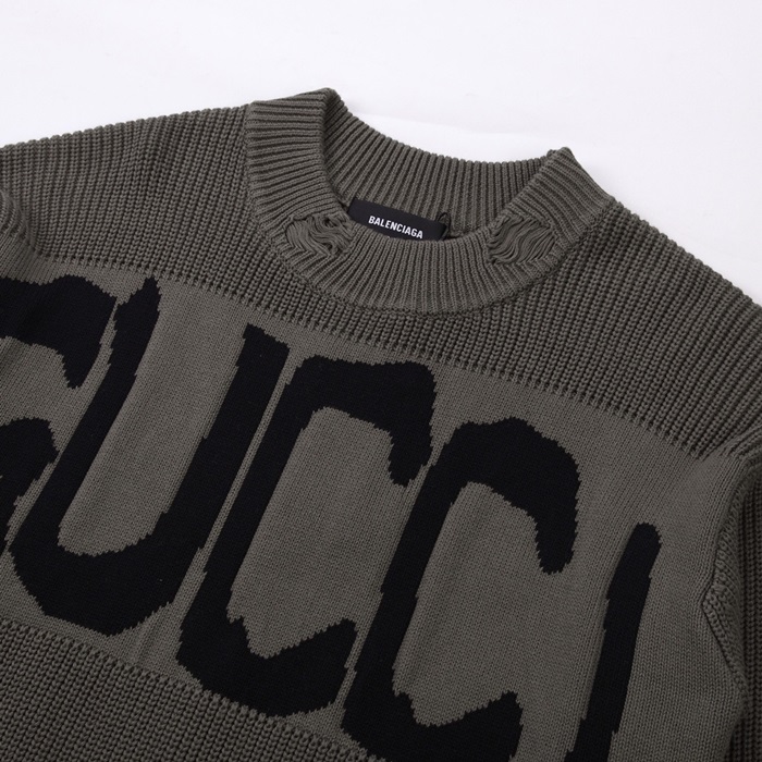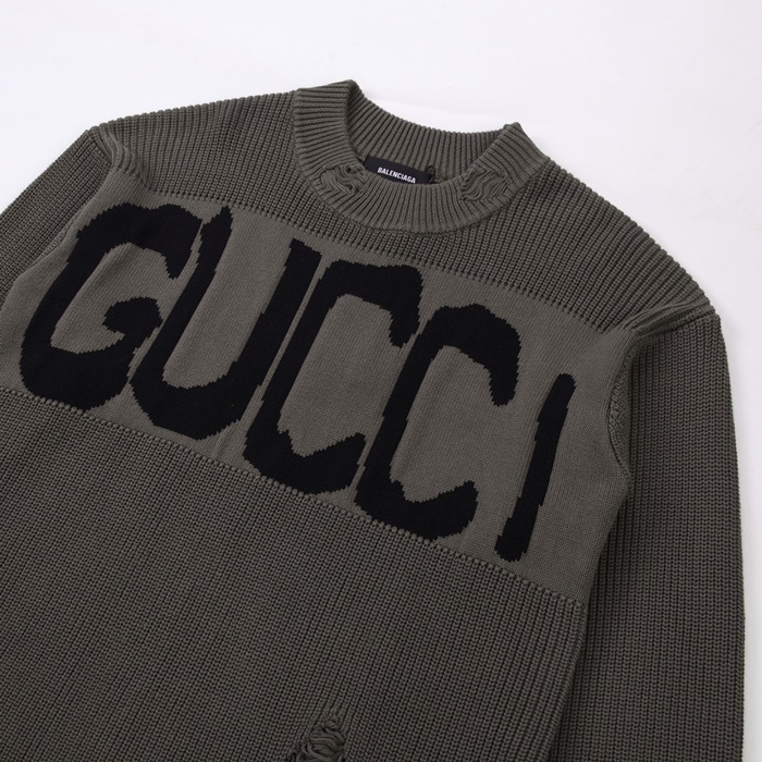 グッチメンズグレークルーネックニットc05259
