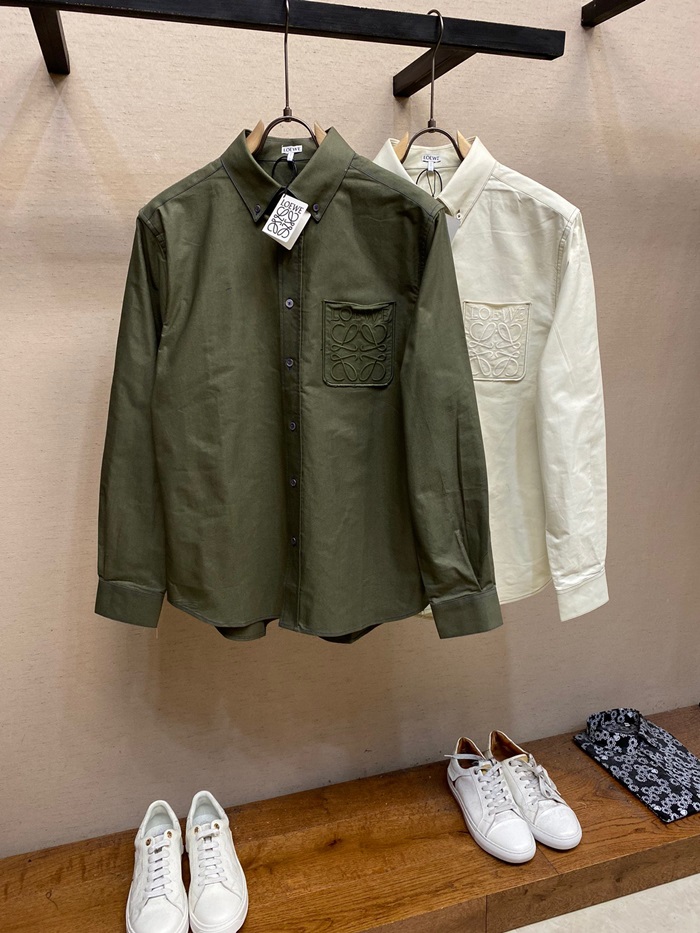 ロエベメンズクラシックカーキシャツe0655