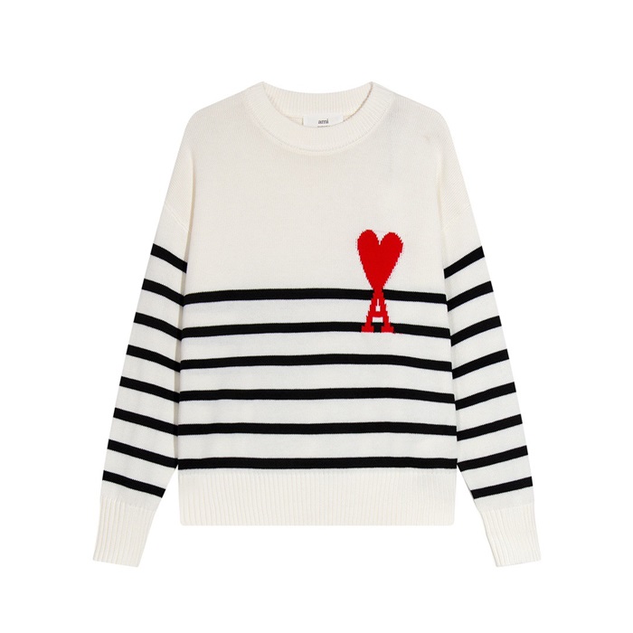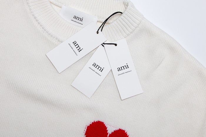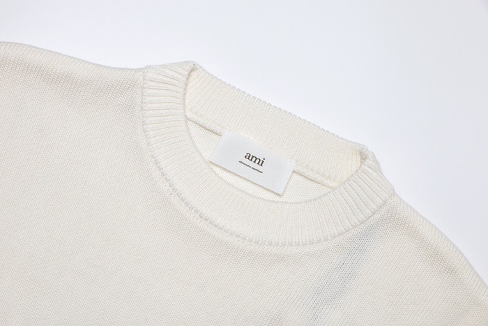 アミユニセックスホワイトクルーネックニットi0305
