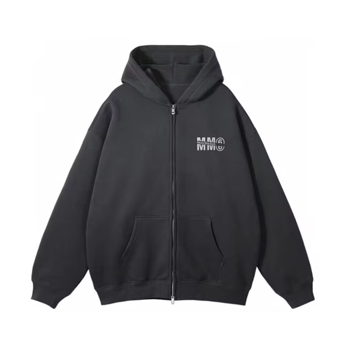 メゾンマルジェラメンズカジュアルブラックジップアップフーディc02860