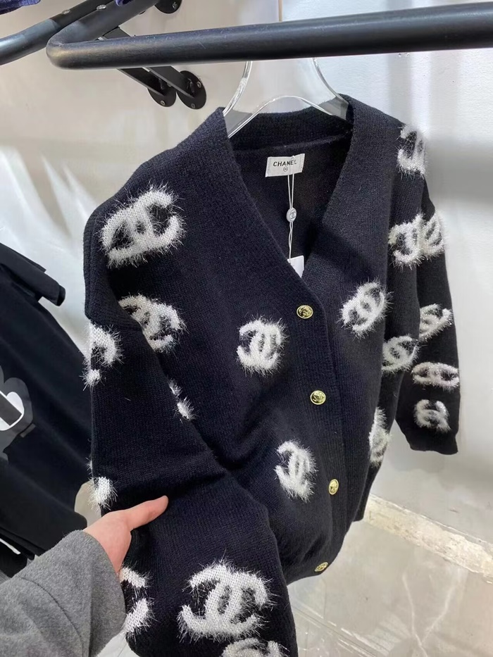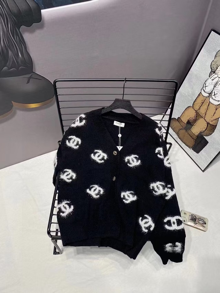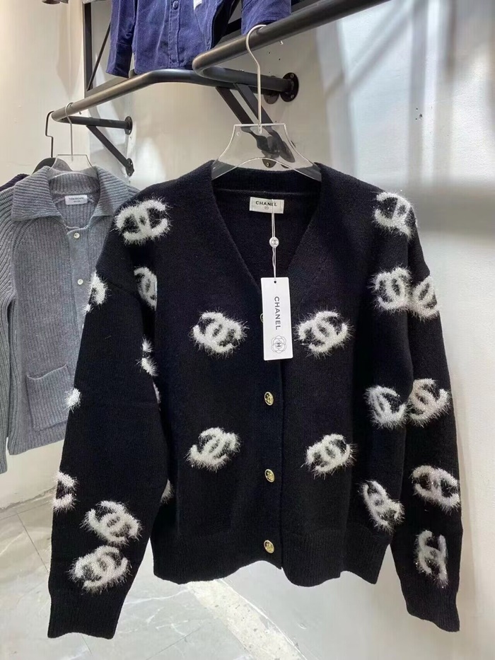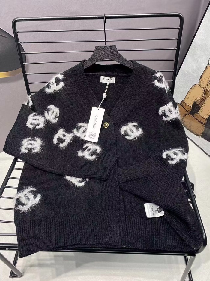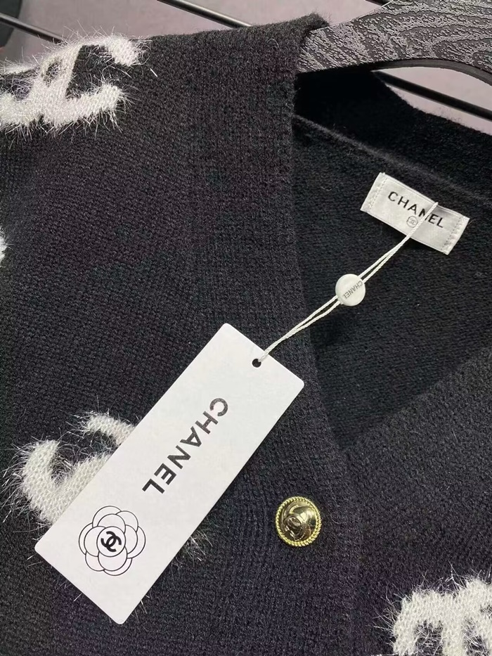 シャネルレディースネックブラックカーディガンl0931