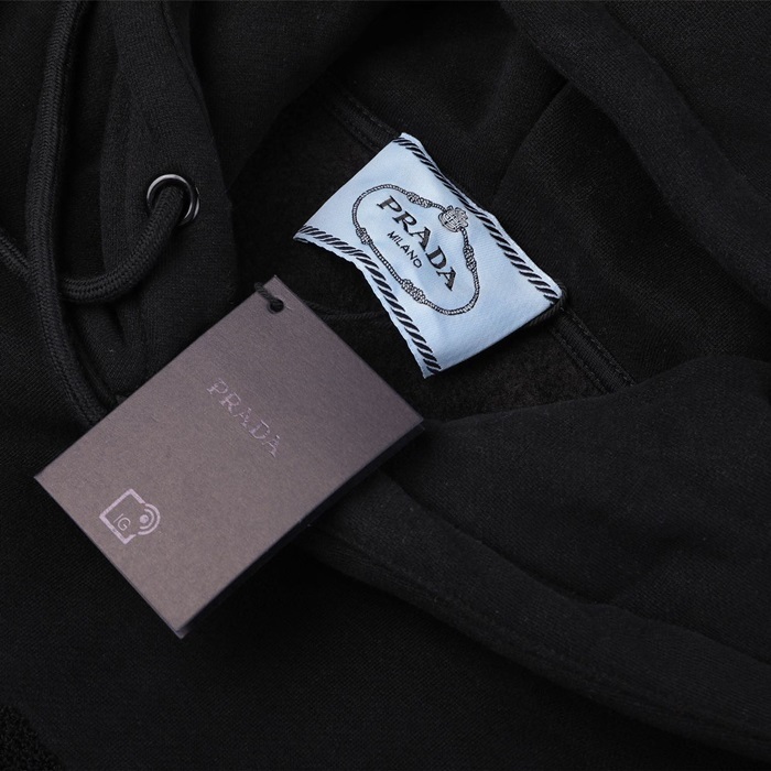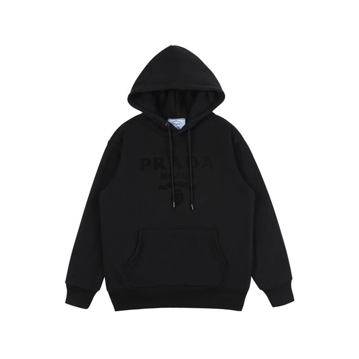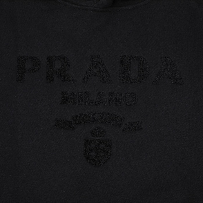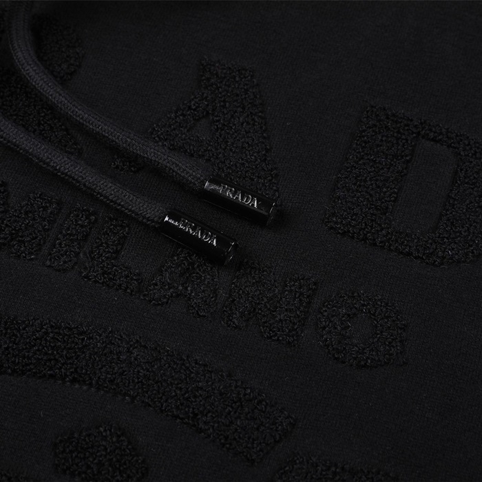 プラダユニセックスカジュアルブラックフーディa02876