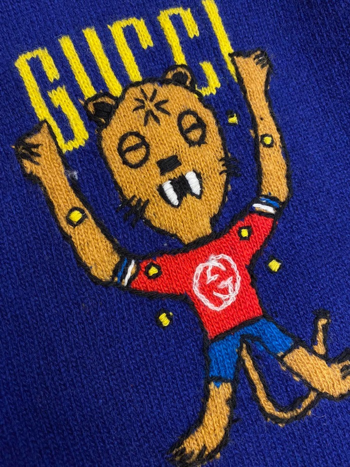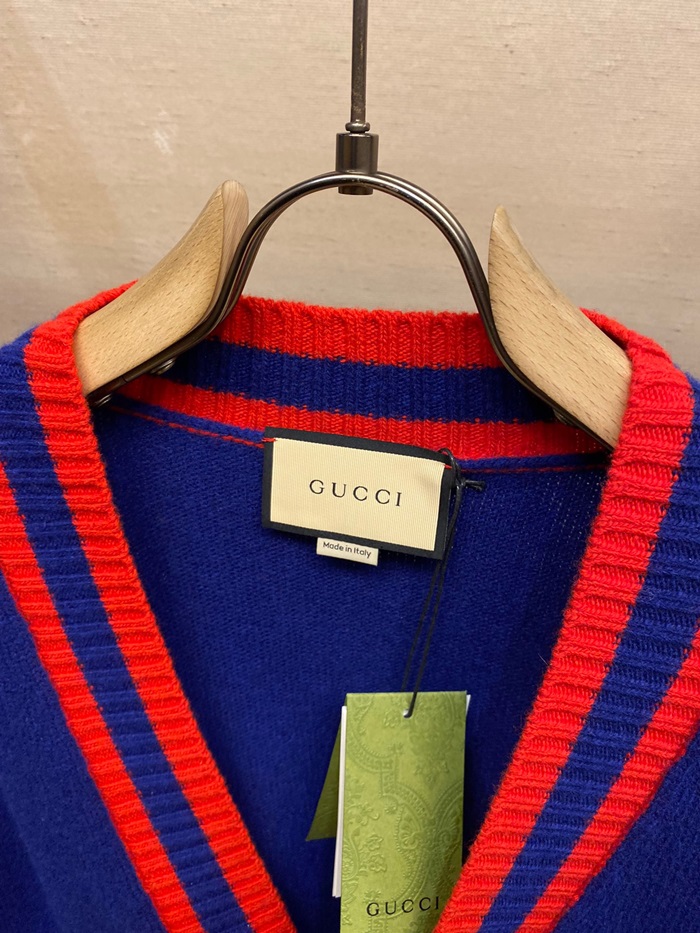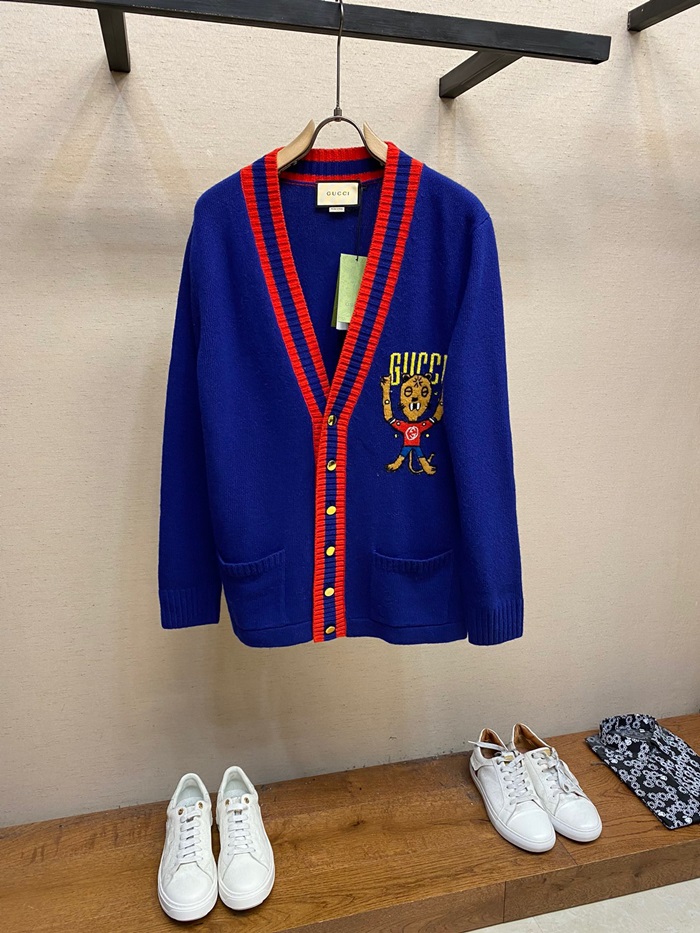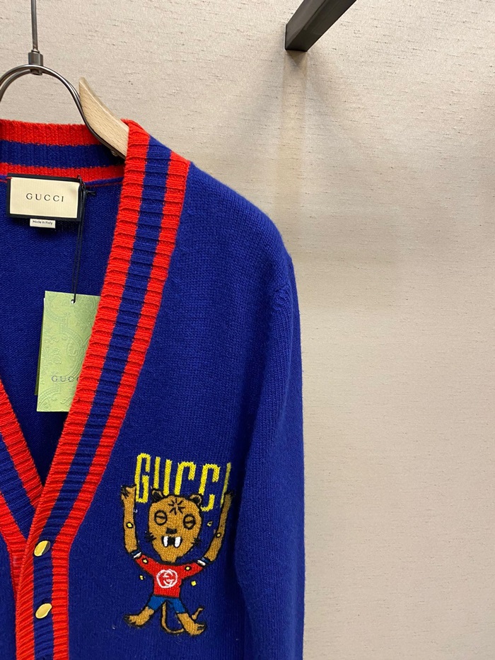 グッチユニセックスネックブルーカーディガンc05299