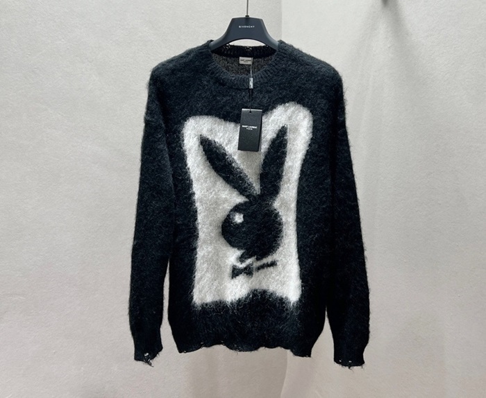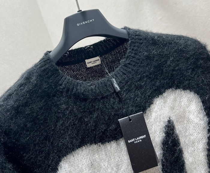 サンローランユニセックスクルーネックブラックニットl0141
