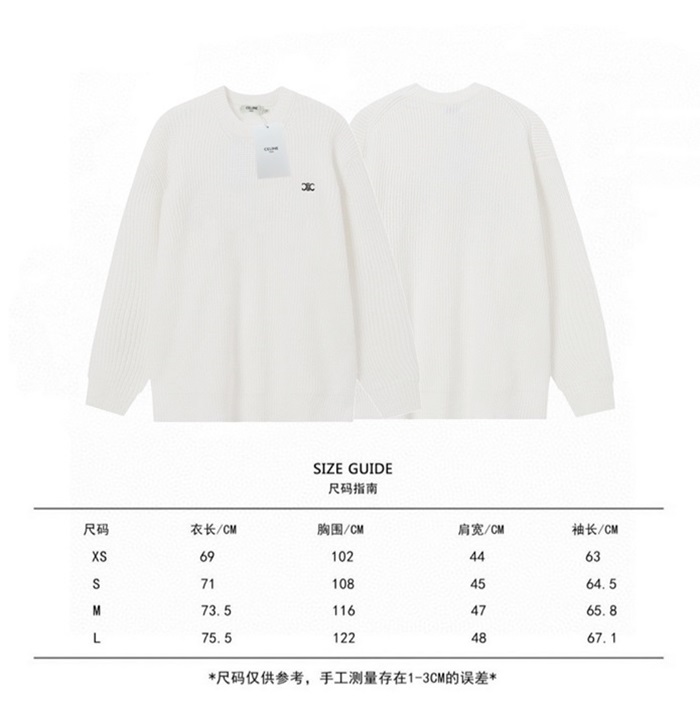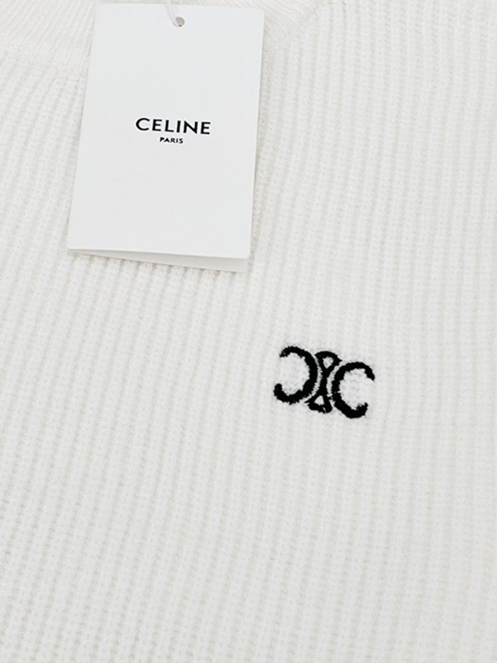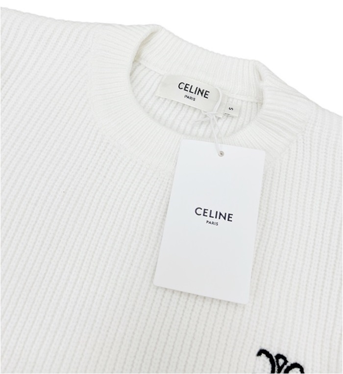 セリーヌユニセックスクルーネックホワイトニットl0516