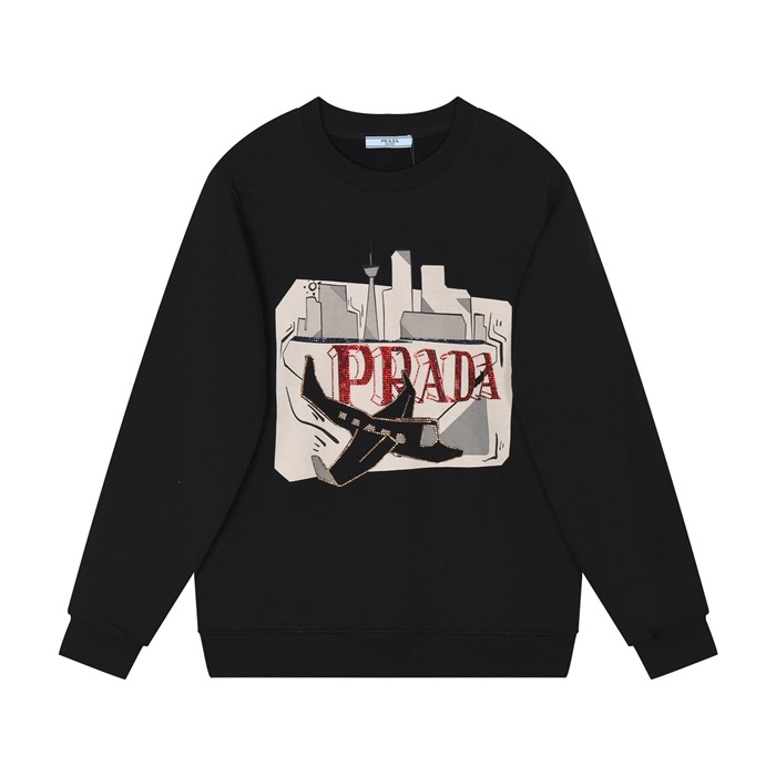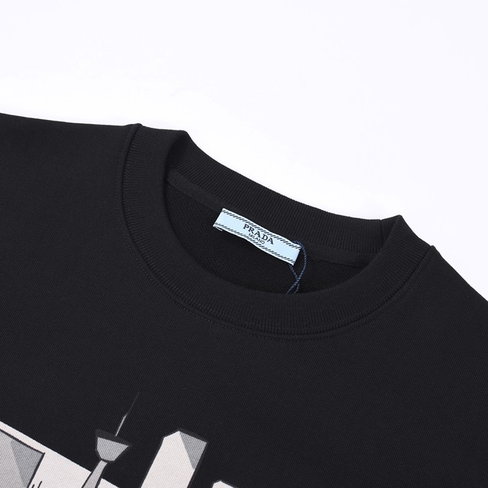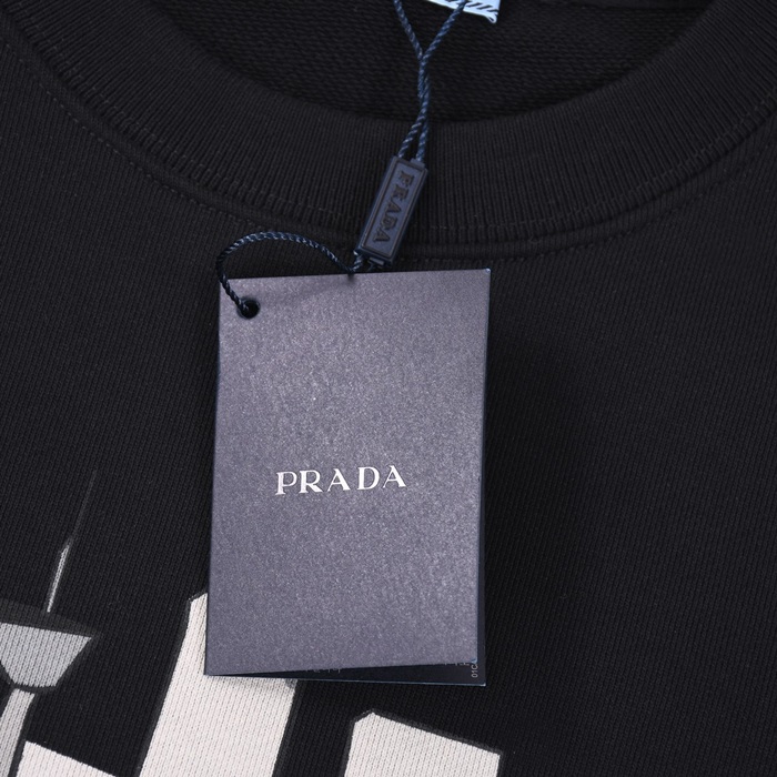 プラダメンズクルーネックブラックスウェットシャツa02880